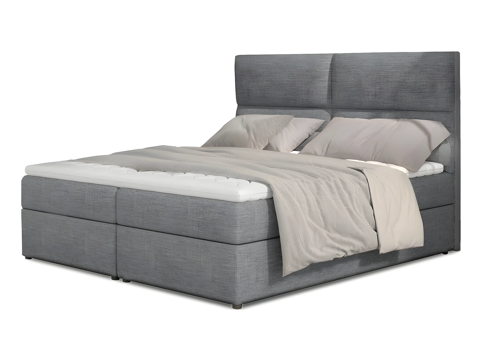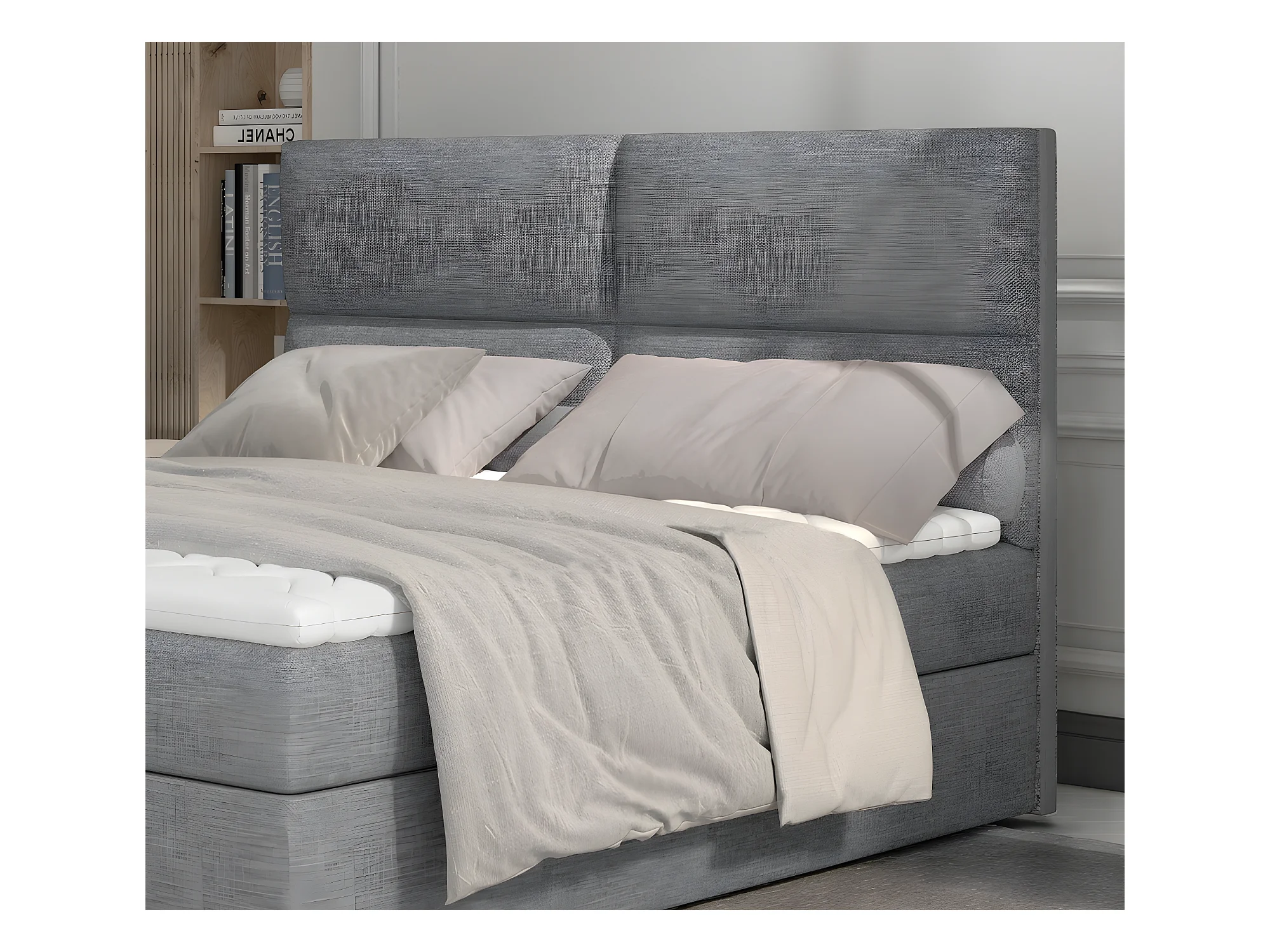 Ensemble boxspring complet tête de lit + sommiers + matelas + surmatelas AMARIS de VENESETTI - tissu luxe gris clair - 140x200 cm