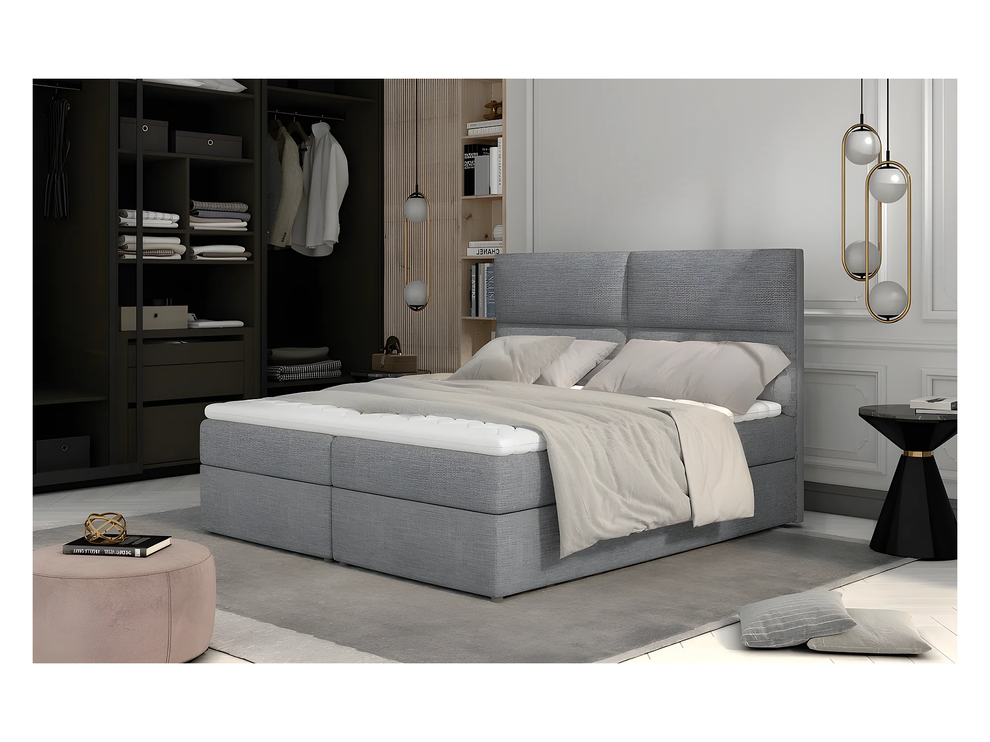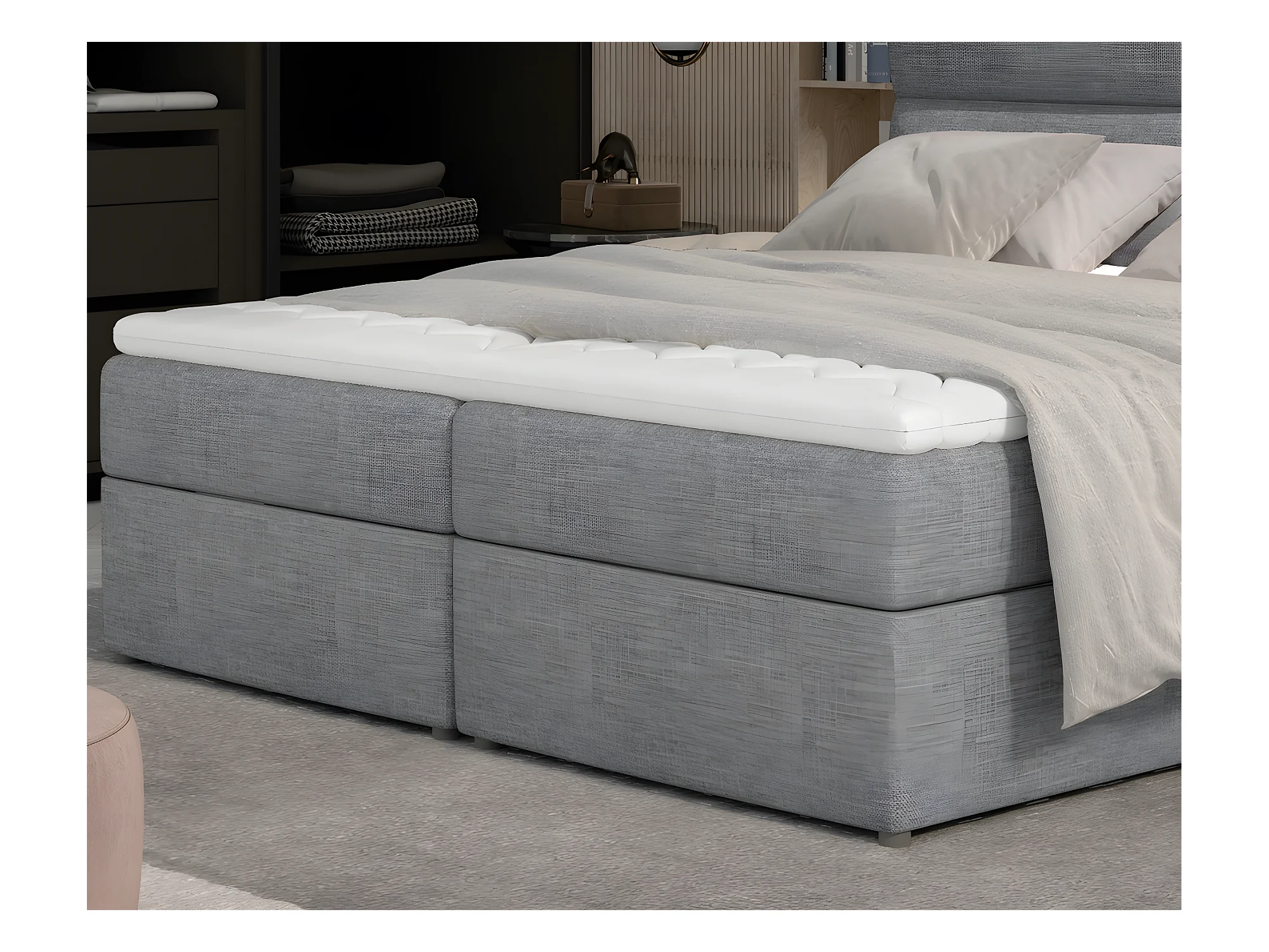 Ensemble boxspring complet tête de lit + sommiers + matelas + surmatelas AMARIS de VENESETTI - tissu luxe gris clair - 160x200 cm
