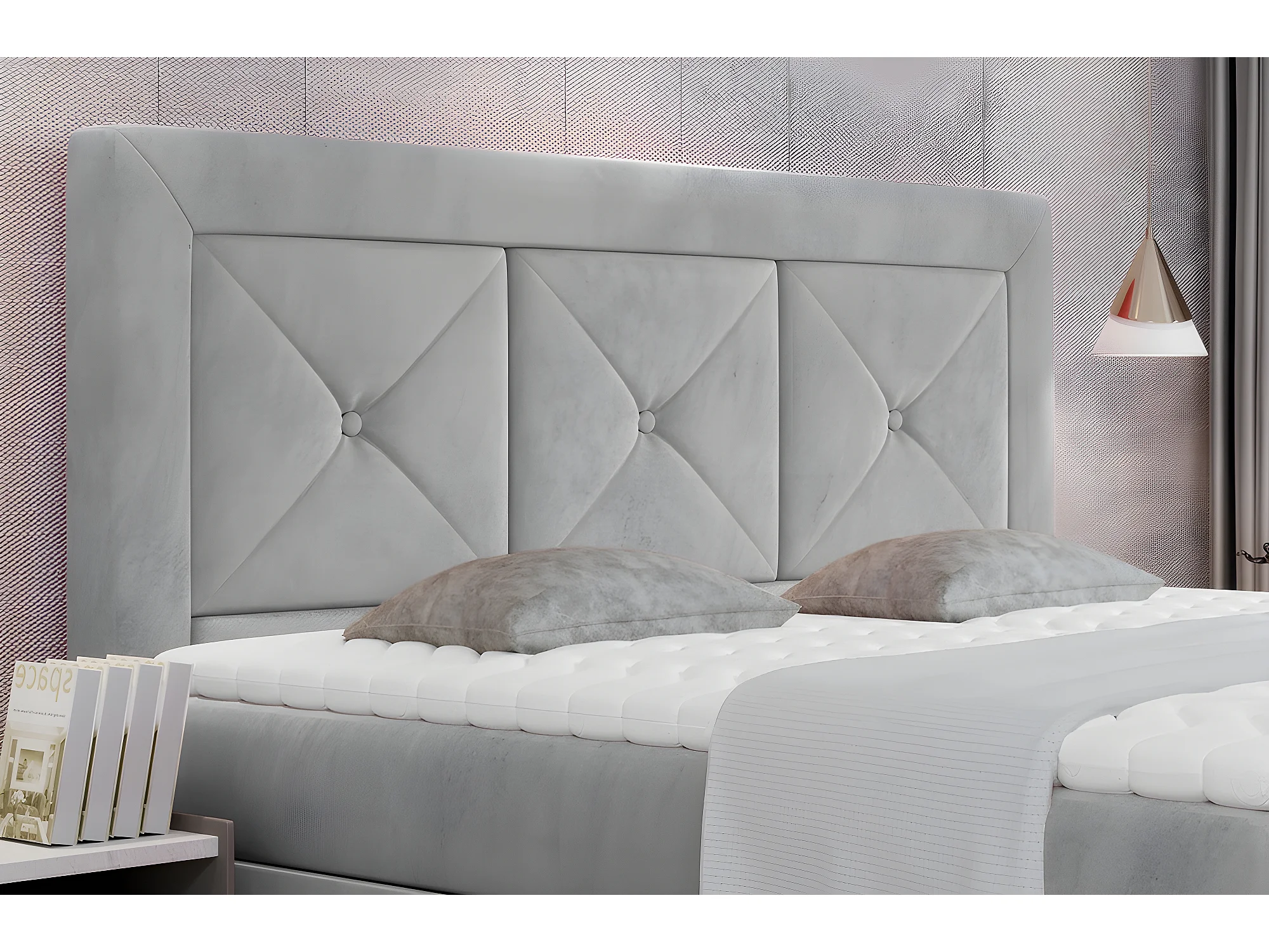 Ensemble boxspring complet tête de lit + sommiers + matelas + surmatelas IDYLLE - velours luxe gris - 180x200 cm