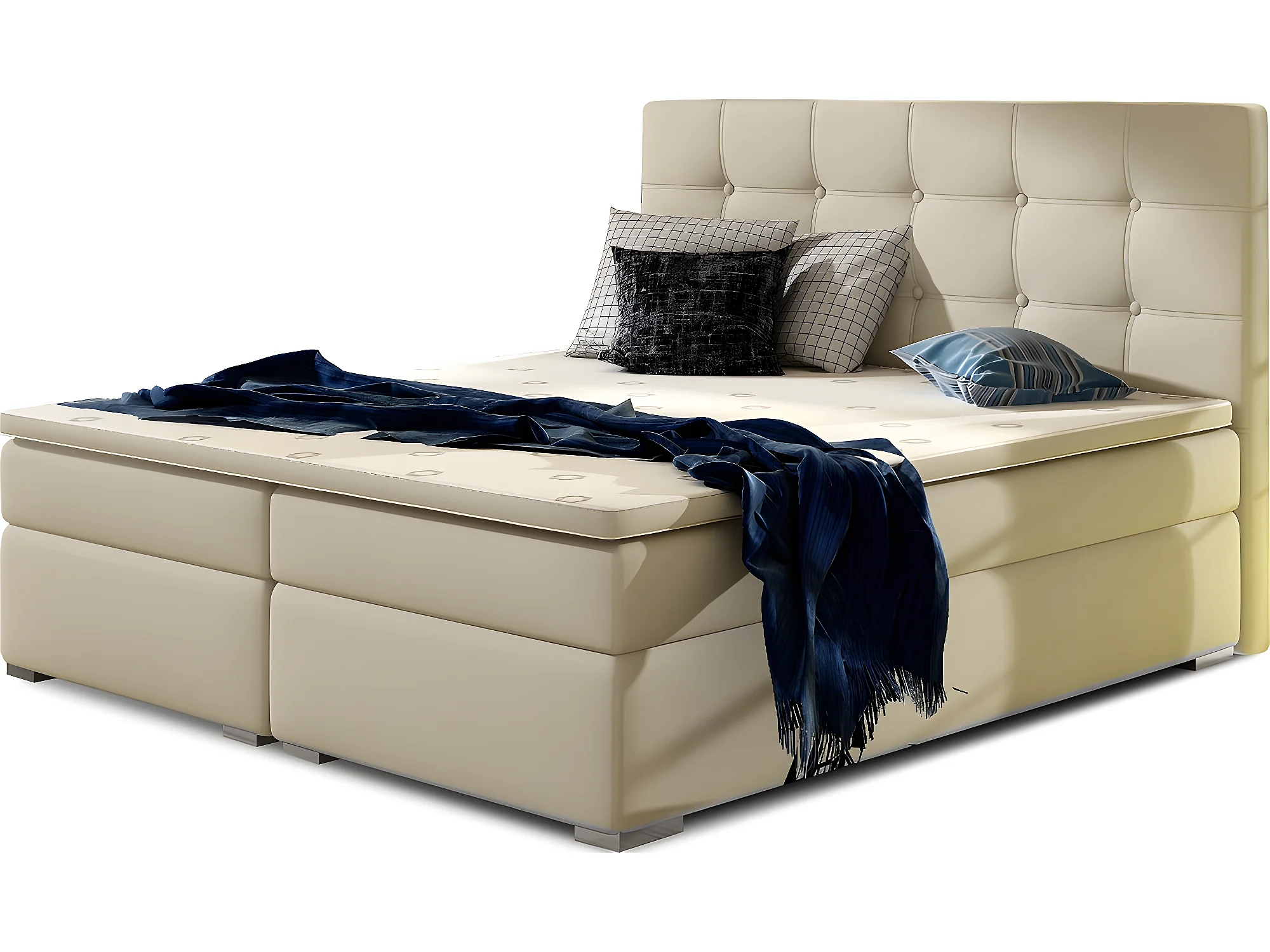 Ensemble boxspring complet tête de lit + sommiers + matelas + surmatelas INAYA de VENESETTI - simili cuir beige - 180x200 cm
