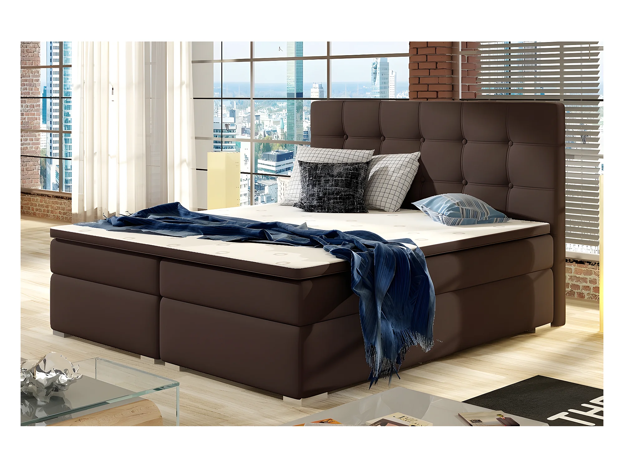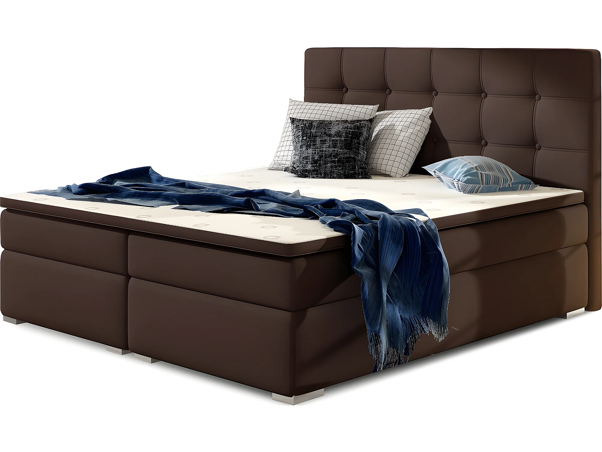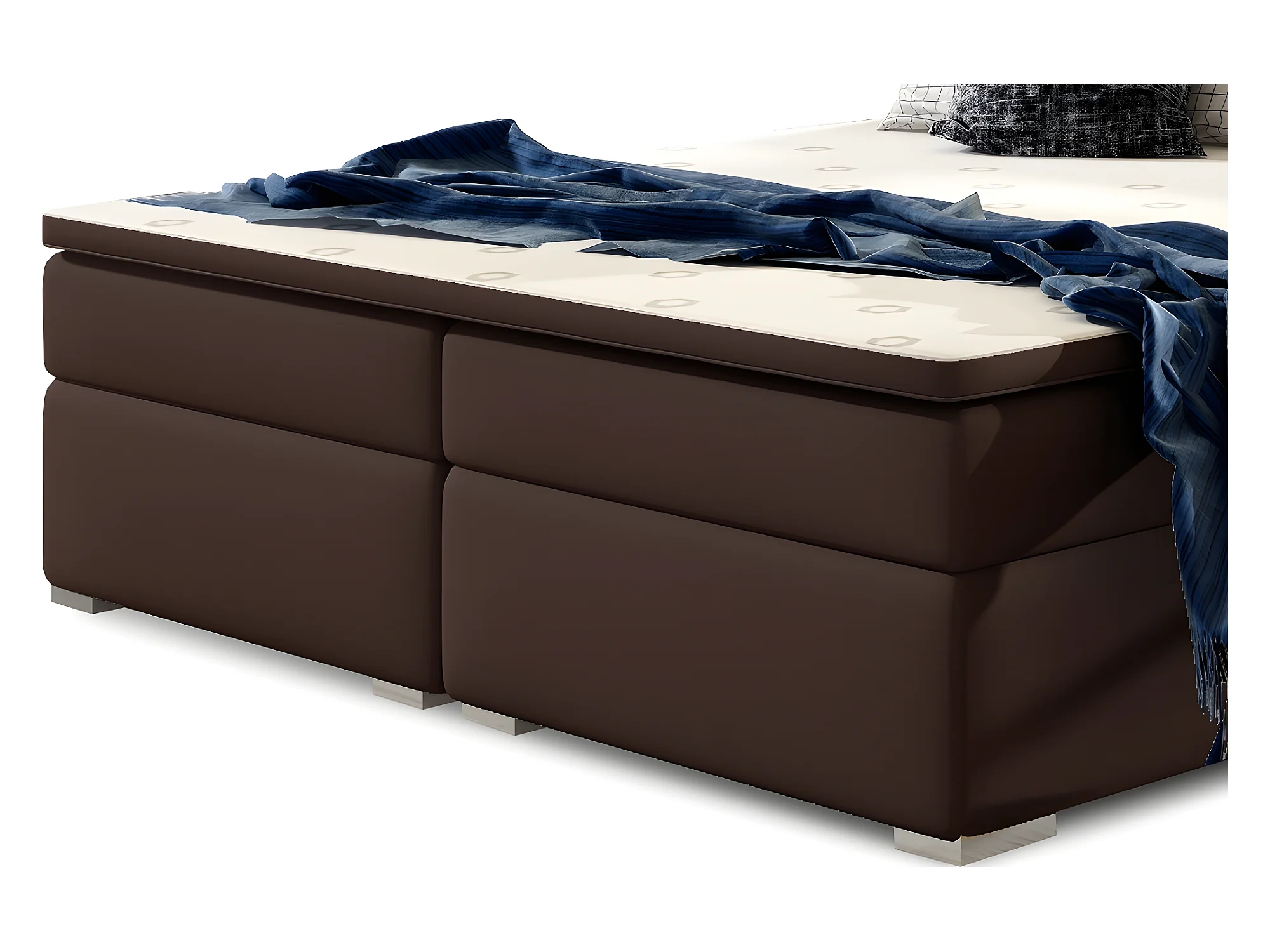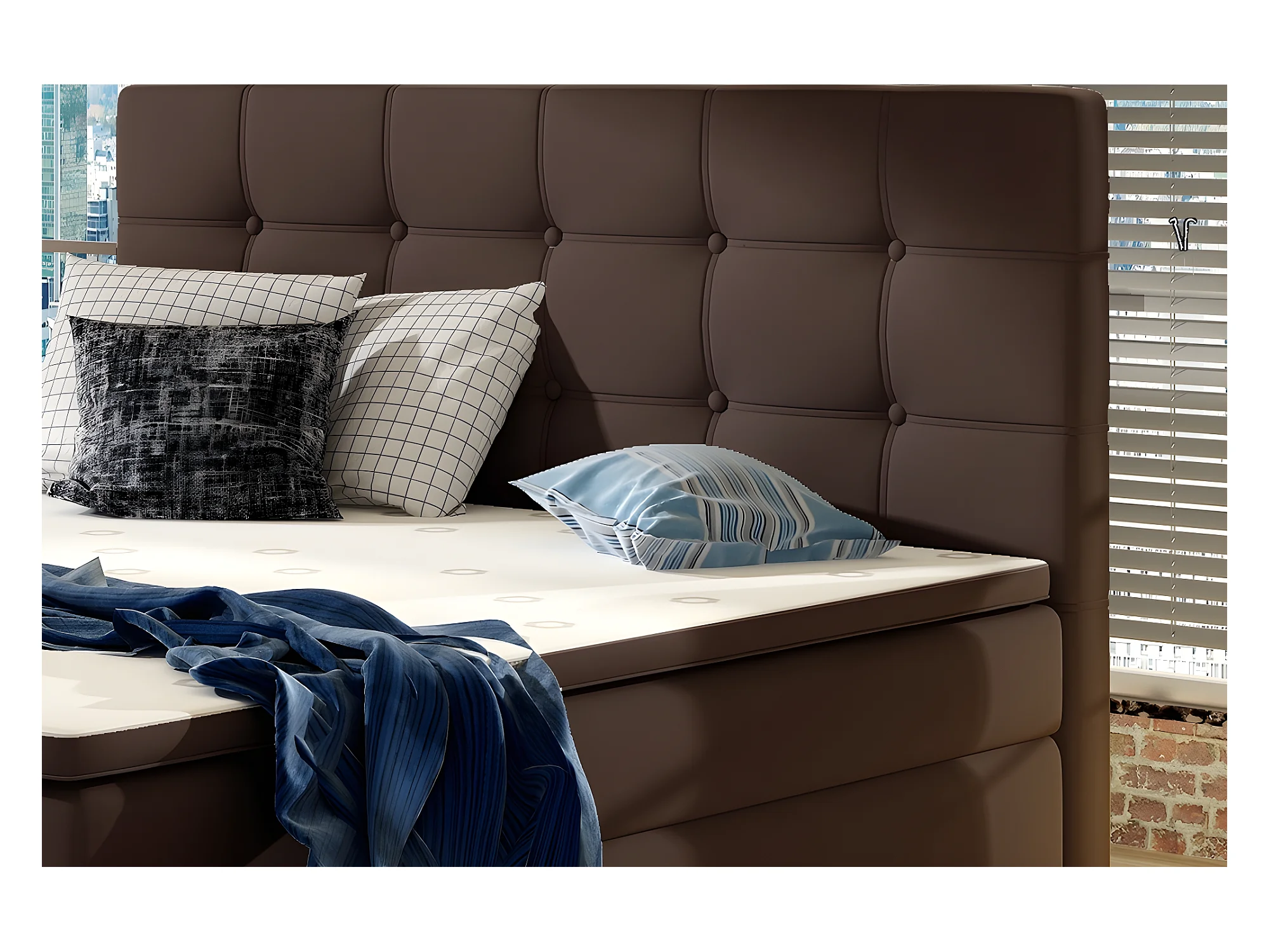 Ensemble boxspring complet tête de lit + sommiers + matelas + surmatelas INAYA de VENESETTI - simili cuir chocolat - 140x200 cm