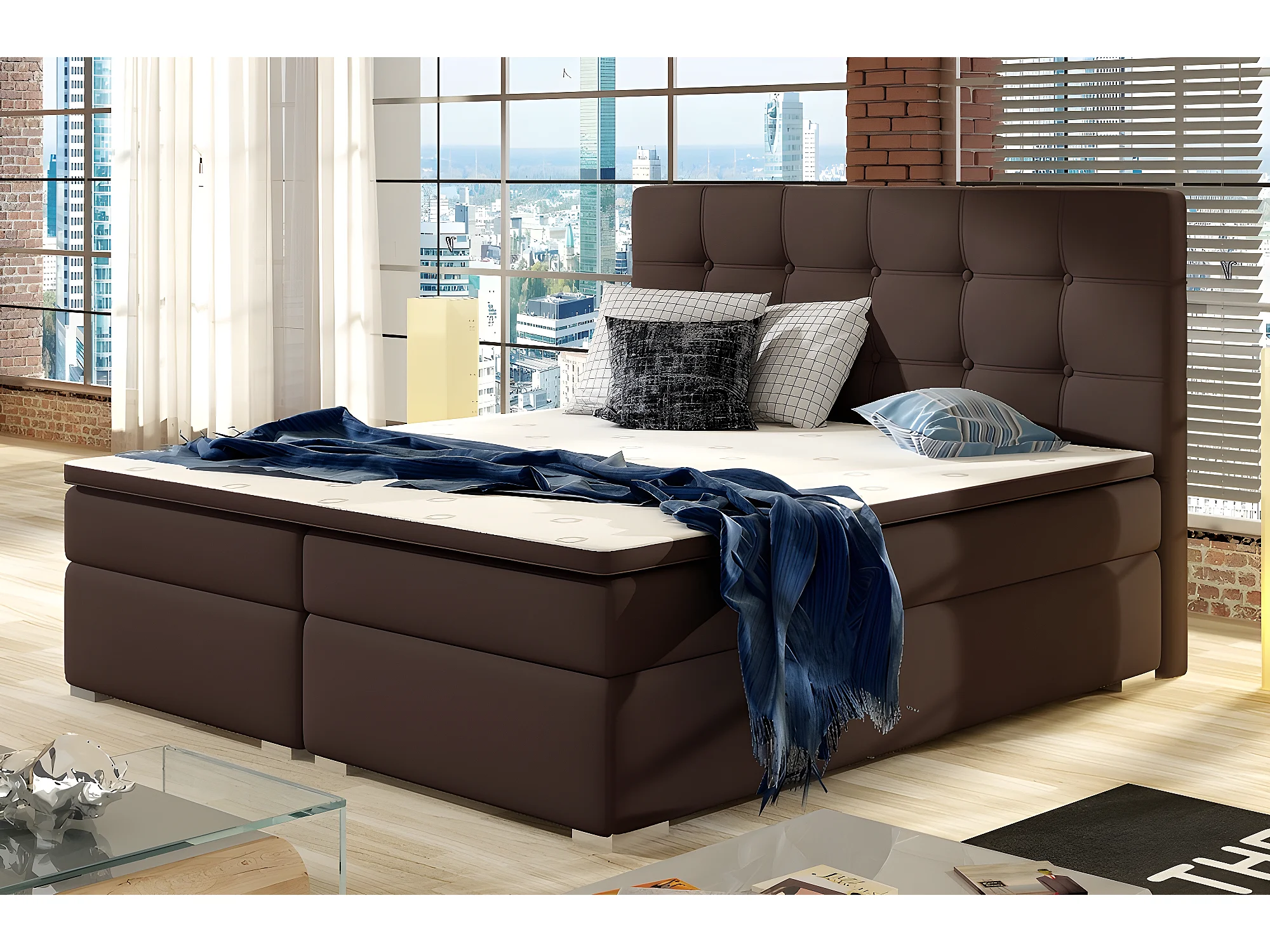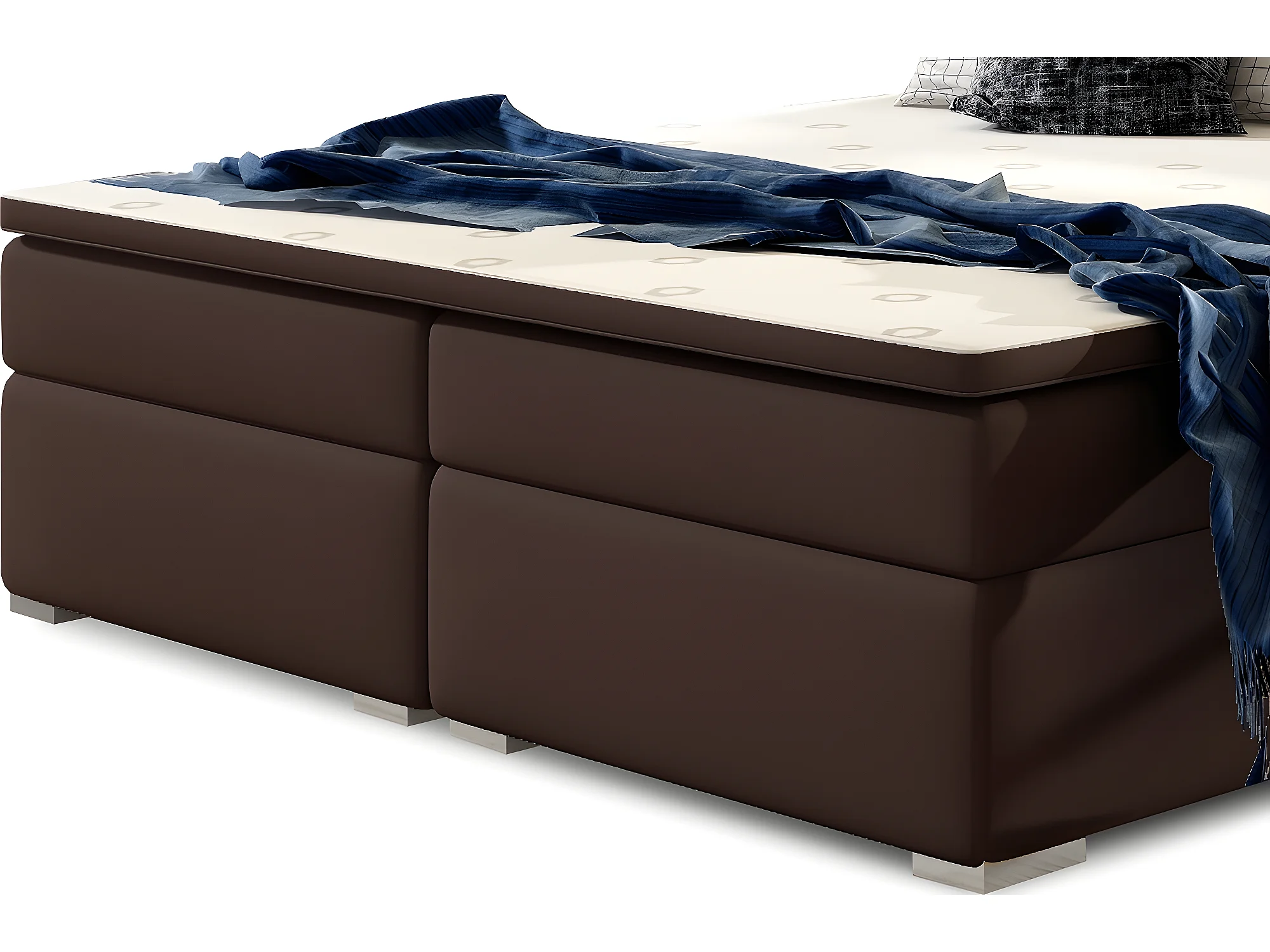 Ensemble boxspring complet tête de lit + sommiers + matelas + surmatelas INAYA de VENESETTI - simili cuir chocolat - 180x200 cm