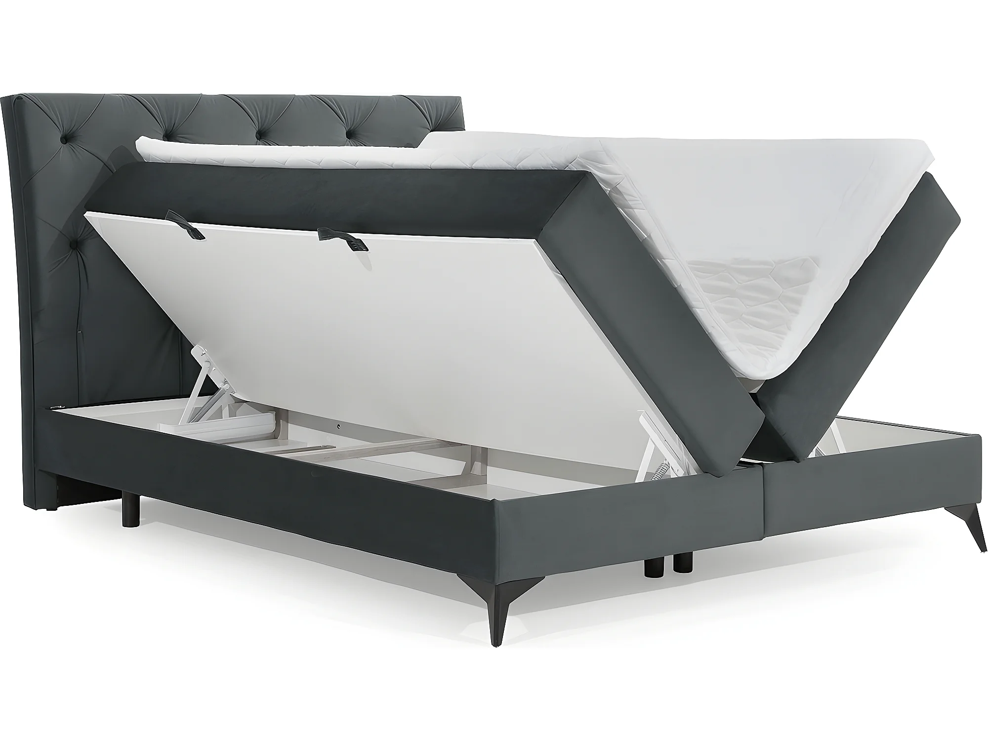 Ensemble boxspring complet tête de lit + sommiers + matelas + surmatelas LAMBERT de VENESETTI - tissu luxe gris foncé - 160x200 cm