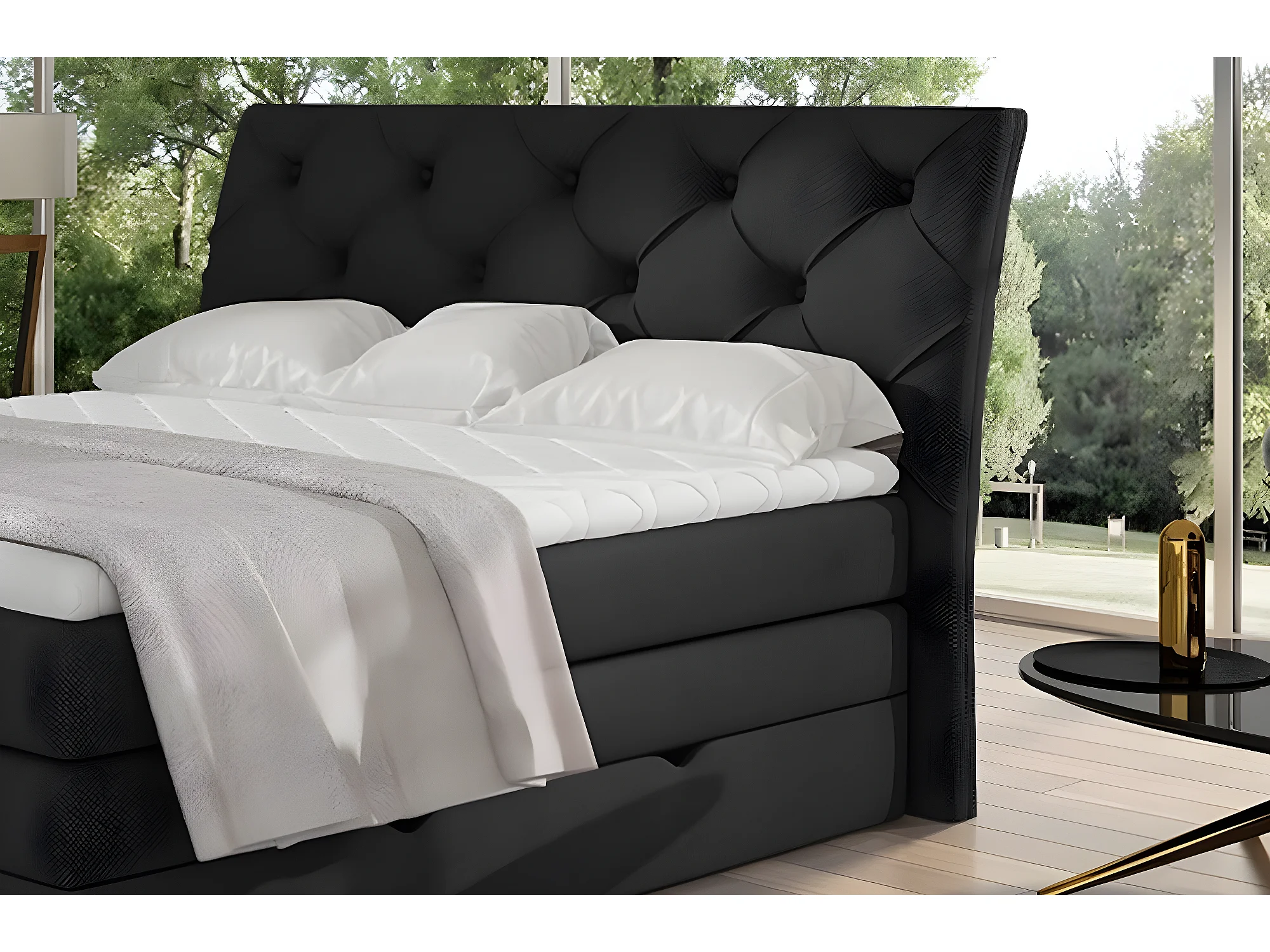 Ensemble boxspring complet tête de lit + sommiers + matelas + surmatelas MIRO tissu luxe noir - 160x200 cm