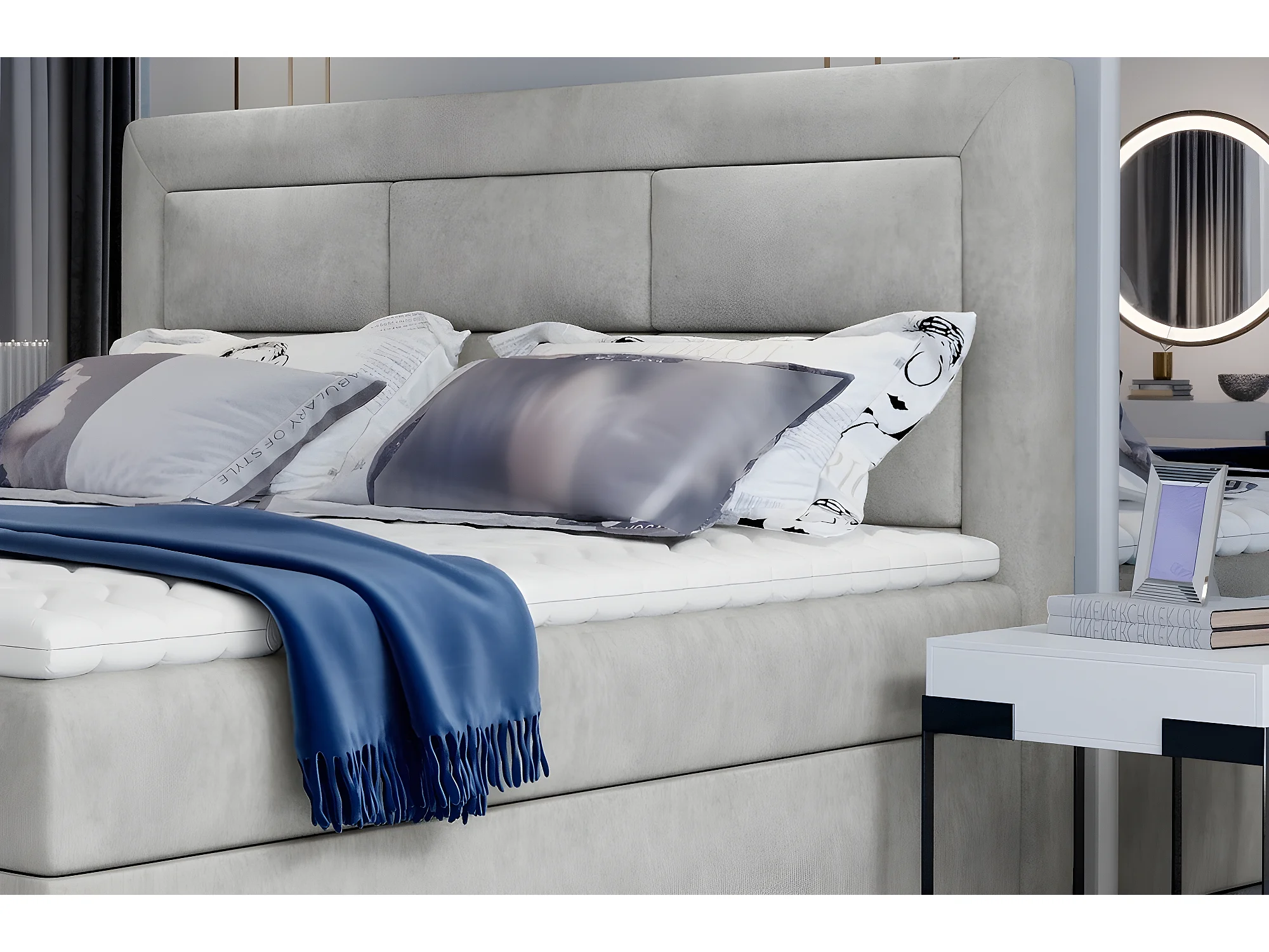 Ensemble boxspring complet tête de lit + sommiers + matelas + surmatelas VISTA de VENESETTI - tissu luxe gris - 160 x 200 cm