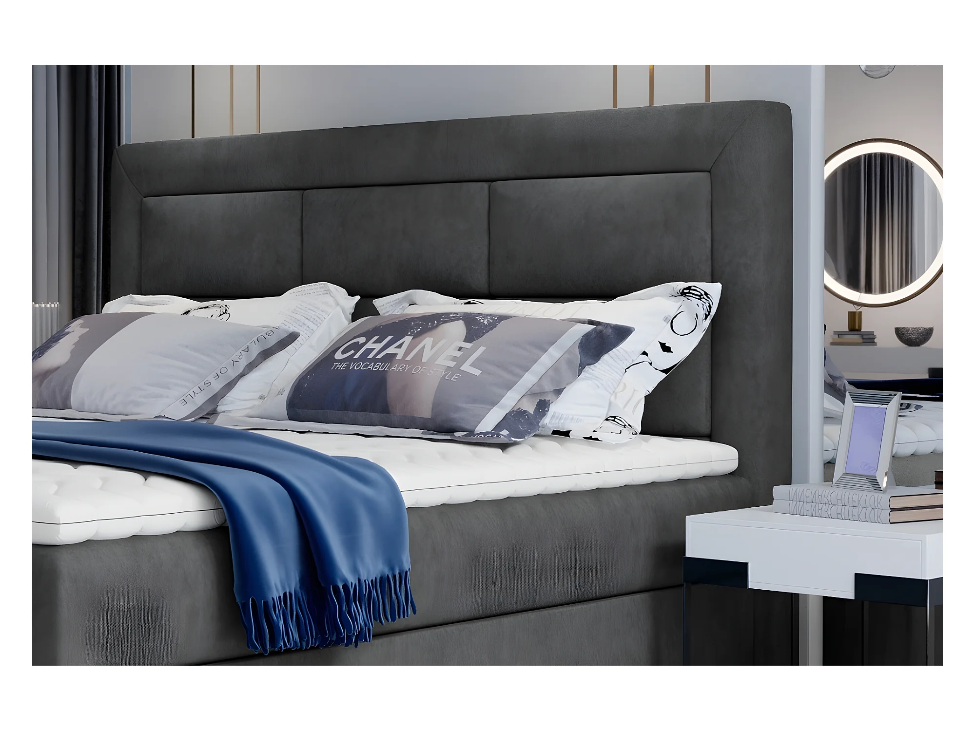 Ensemble boxspring complet tête de lit + sommiers + matelas + surmatelas VISTA de VENESETTI - tissu luxe gris foncé - 140 x 200 cm