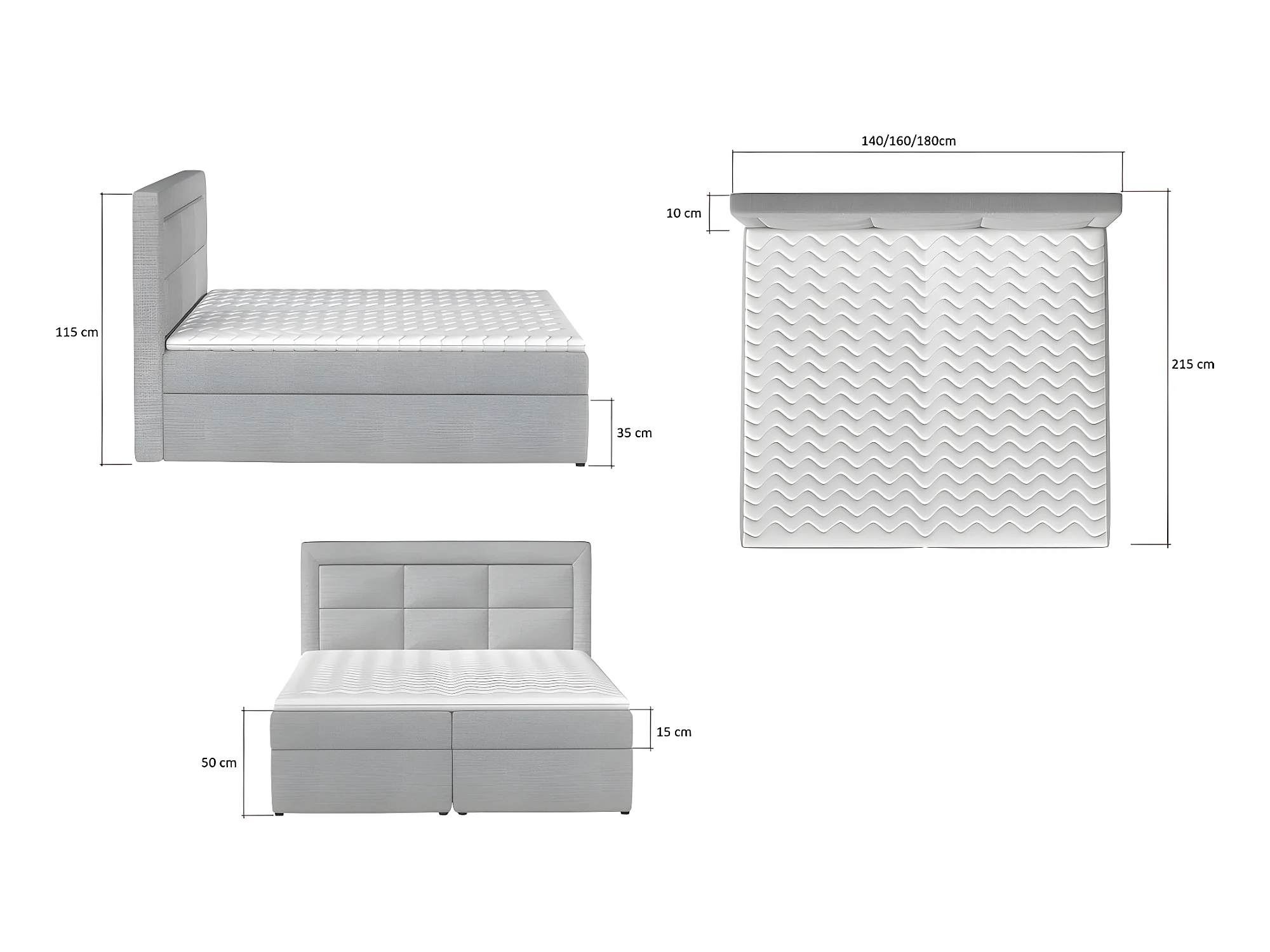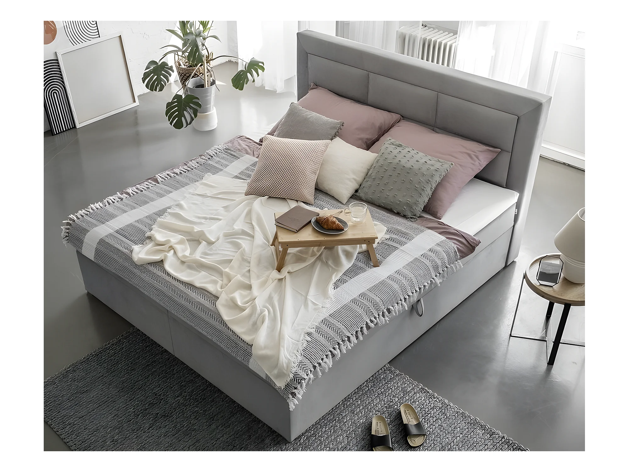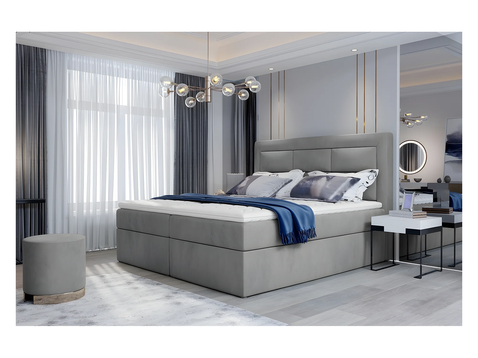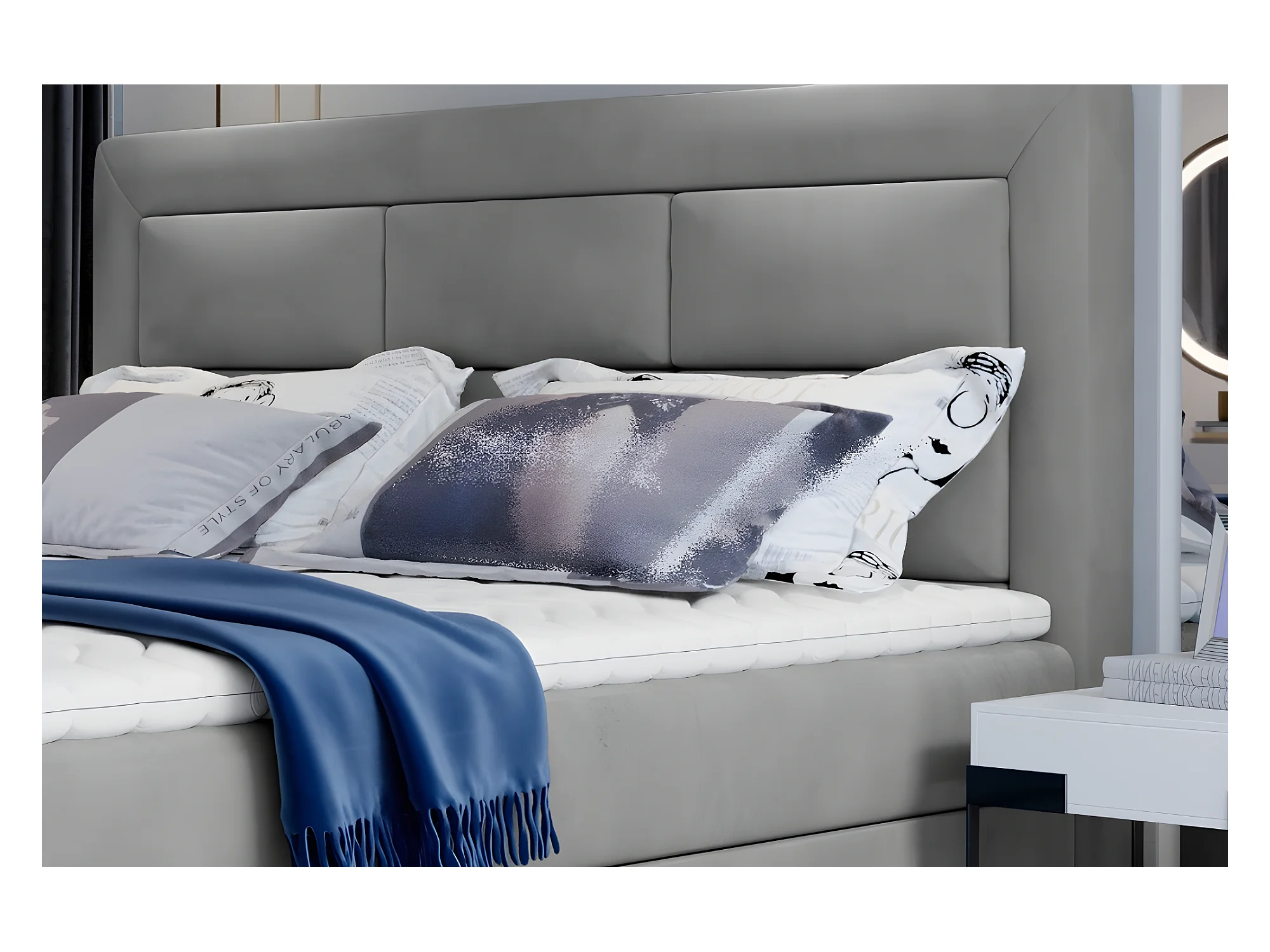 Ensemble boxspring complet tête de lit + sommiers + matelas + surmatelas VISTA VELOURS de VENESETTI - tissu velours luxe gris - 140 x 200 cm