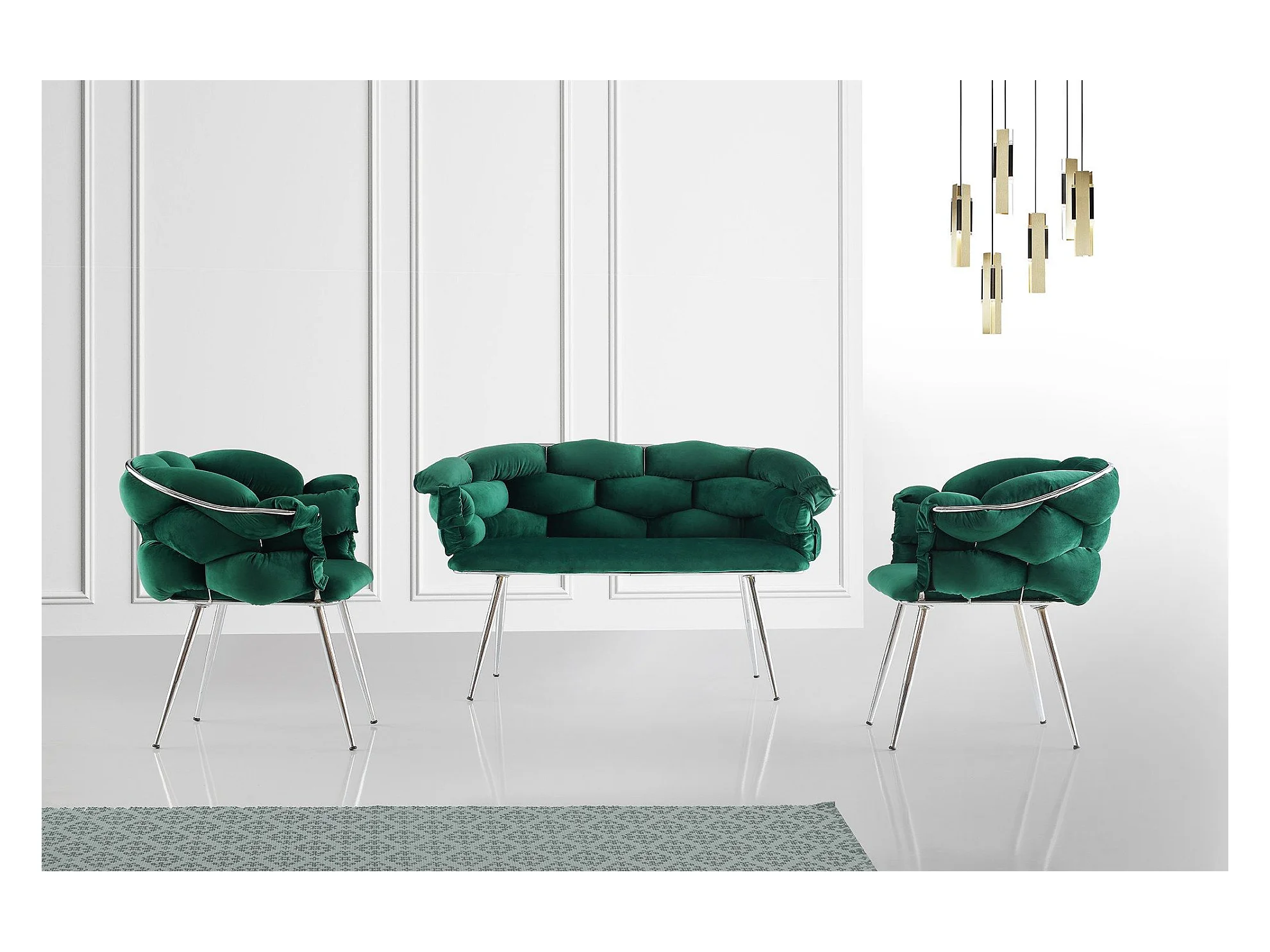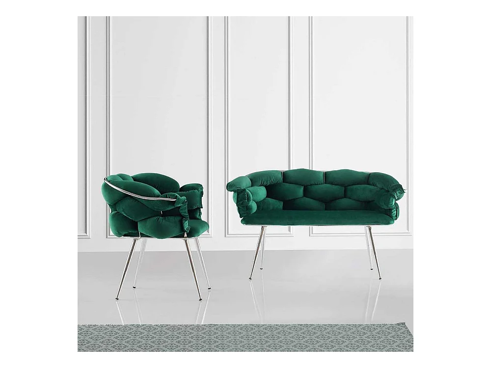 Ensemble canapé 2 places et 2 fauteuils Krogh Métal Chrome et Velours Vert
