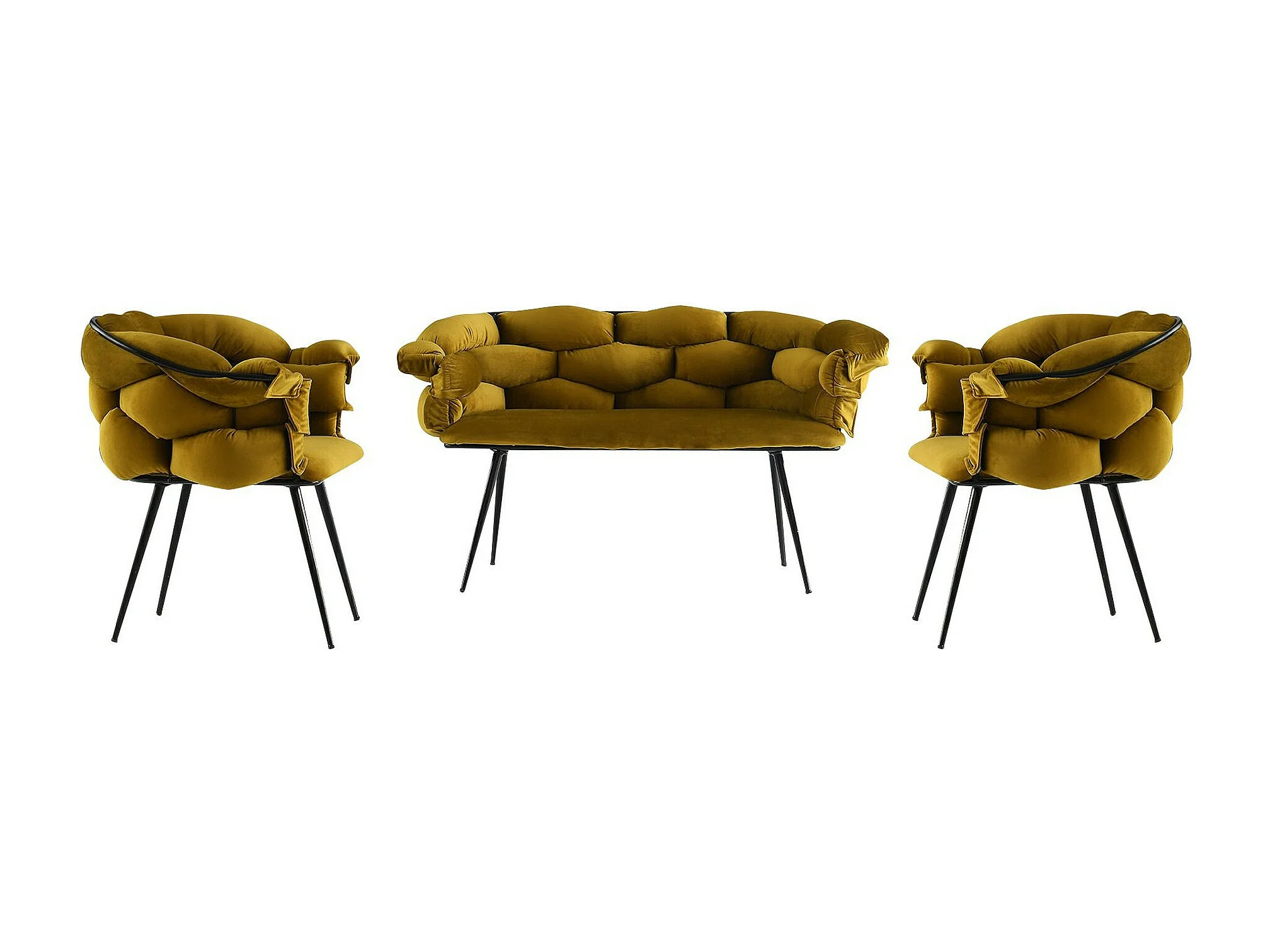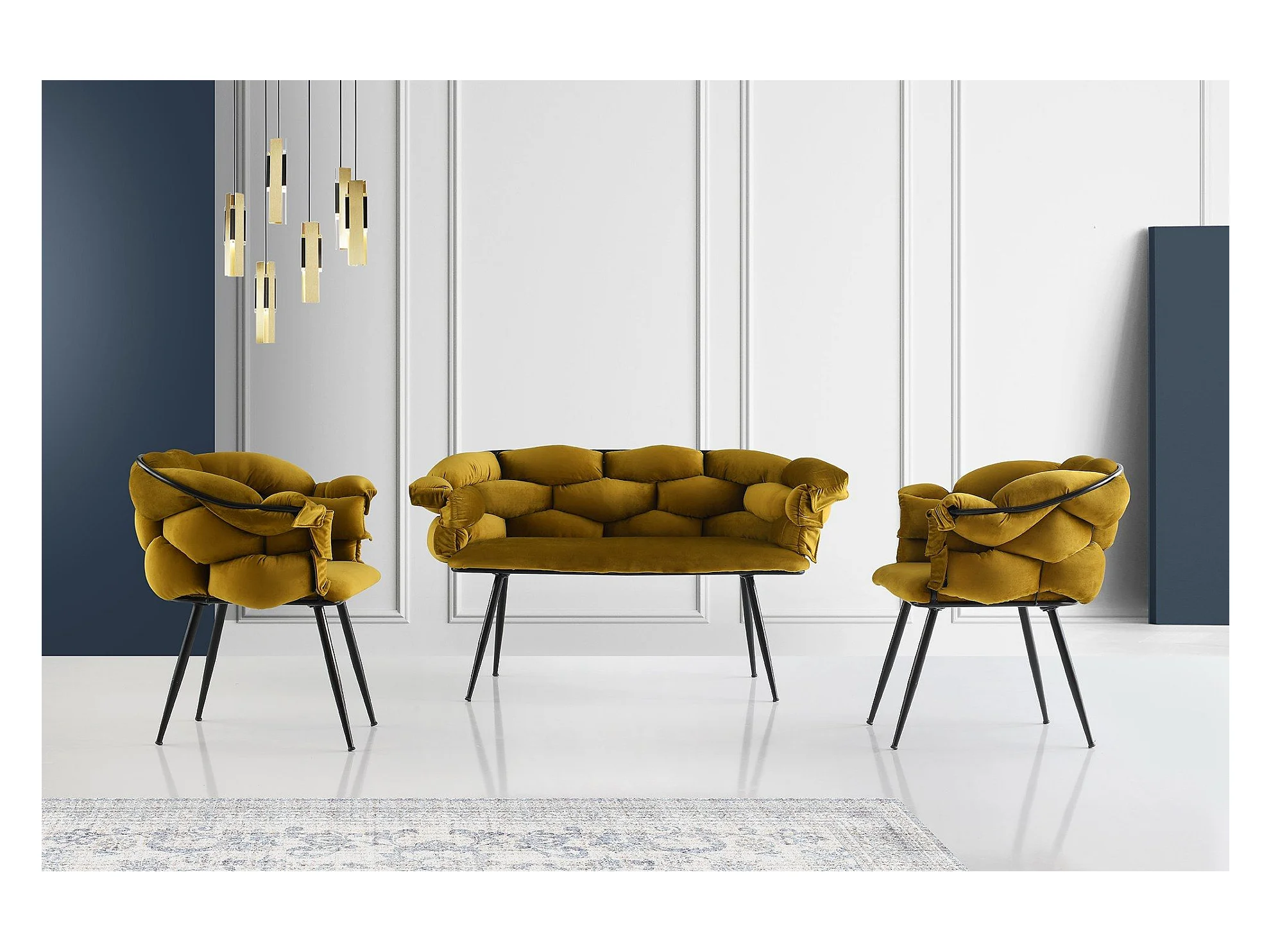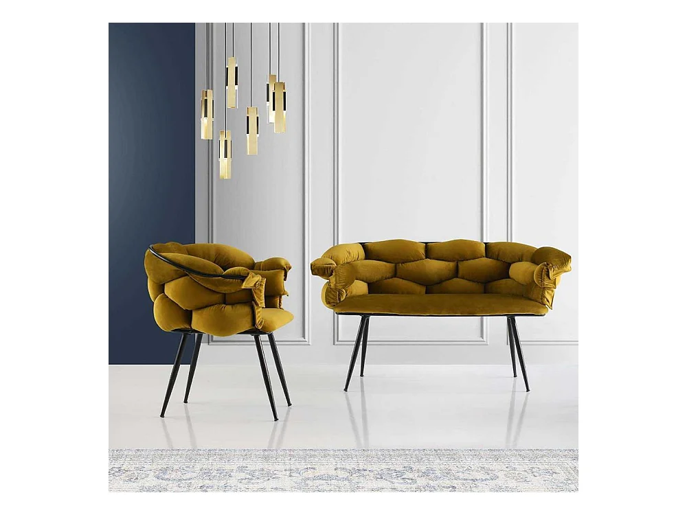 Ensemble canapé 2 places et 2 fauteuils Krogh Métal Noir et Velours Ochre