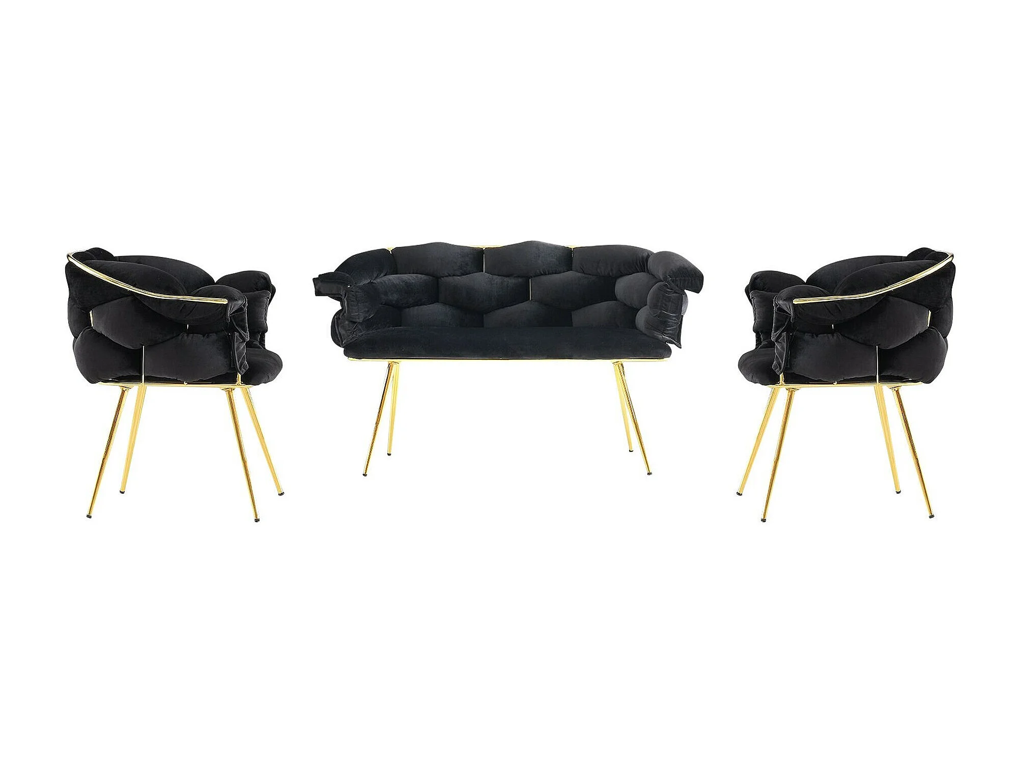Ensemble canapé 2 places et 2 fauteuils Krogh Métal Or et Velours Noir