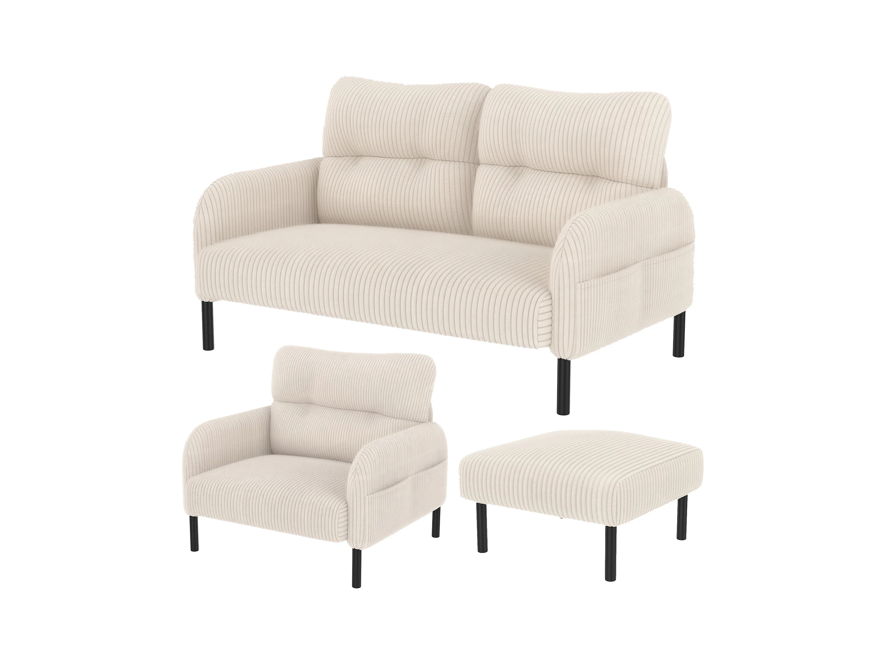 Ensemble Canapé 3 places - 120 x 75 x 79 cm - avec repose-pieds + canapé 2 places + fauteuil - Velours - beige