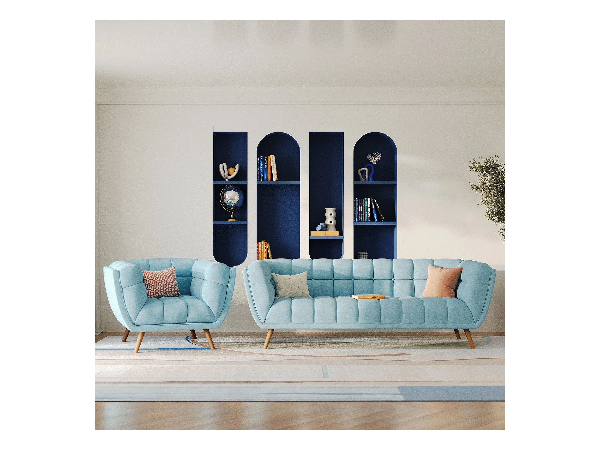 Ensemble canapé et fauteuil en tissu bleu clair 4 places - Carmen