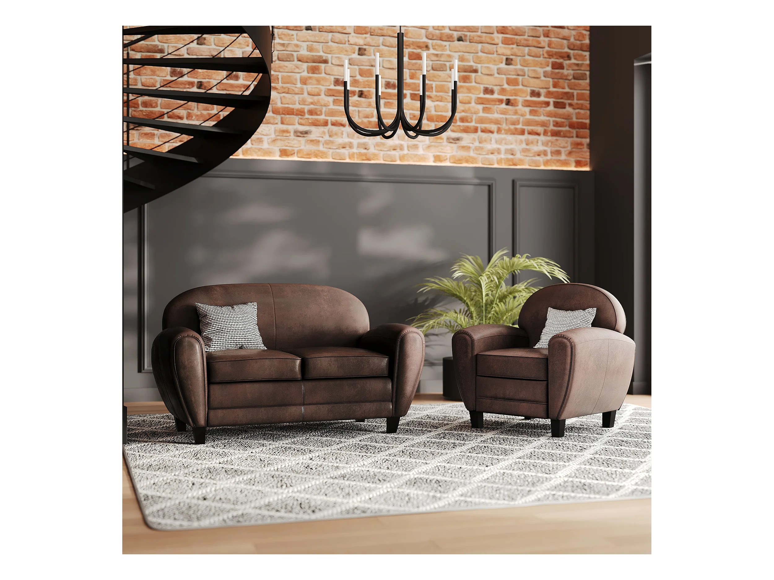Ensemble canapé et fauteuil marron 3 places - Club - Club