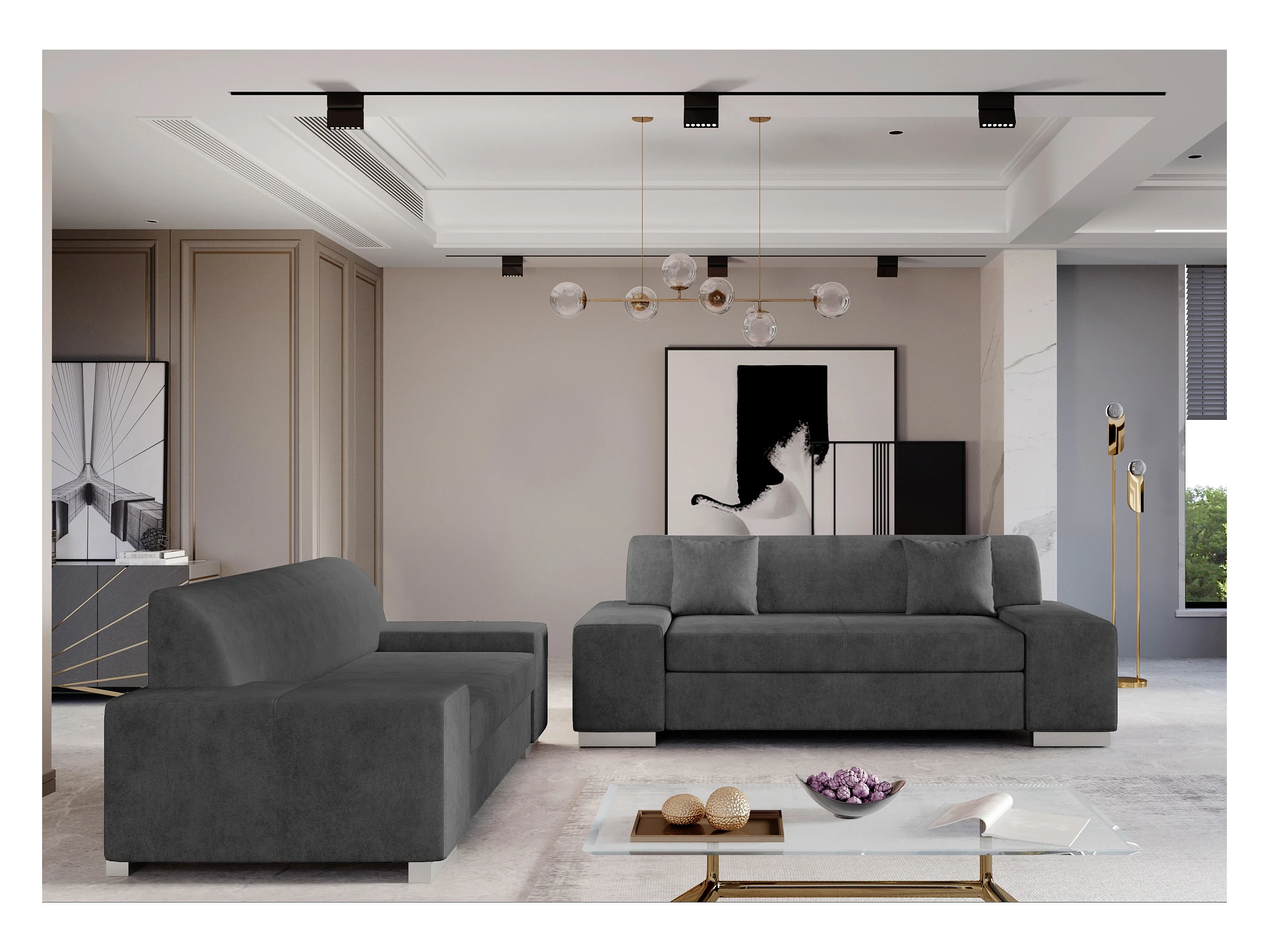 Ensemble Canapé minimaliste 2 et 3 places tissu gris foncé Plazo