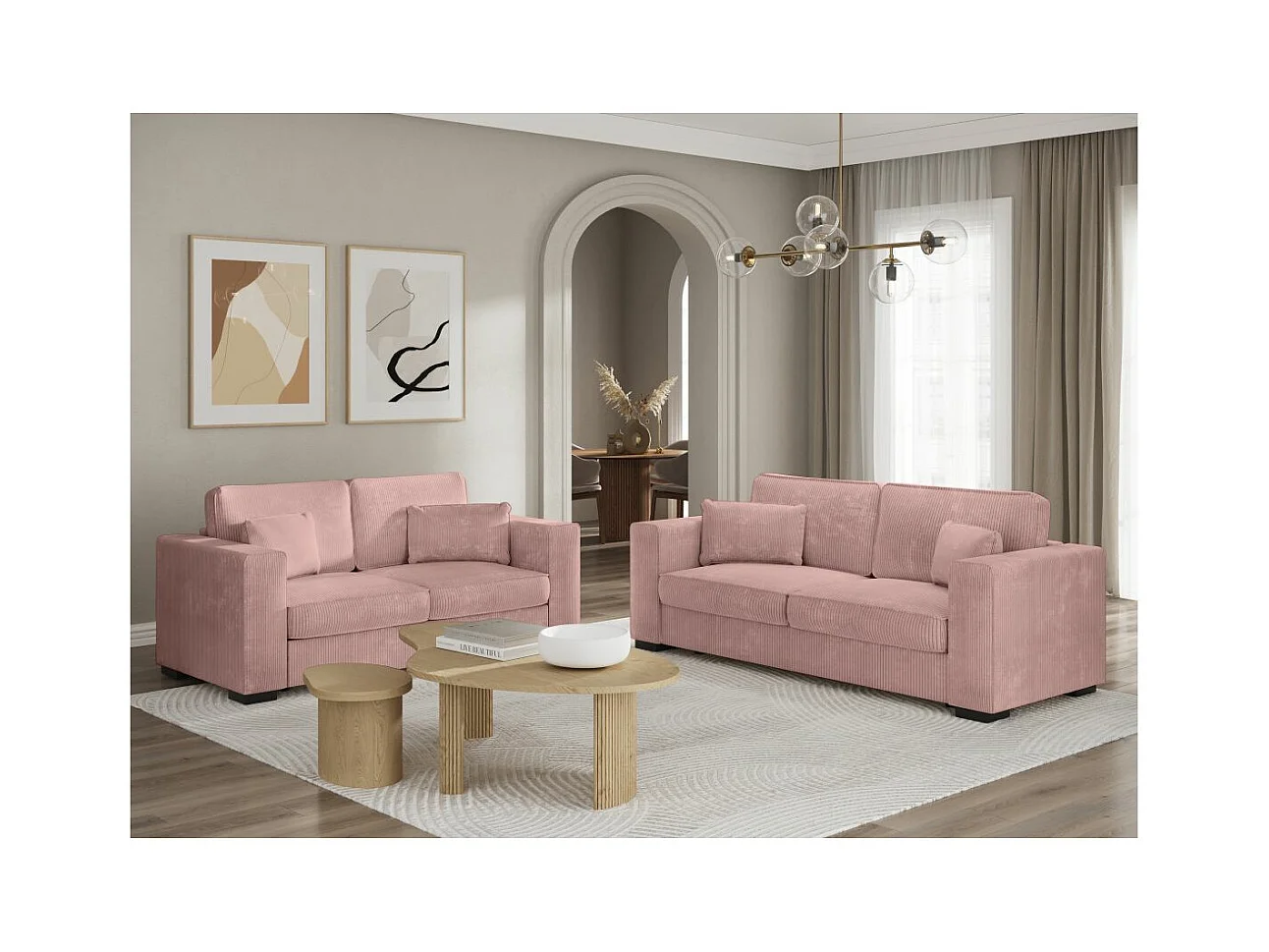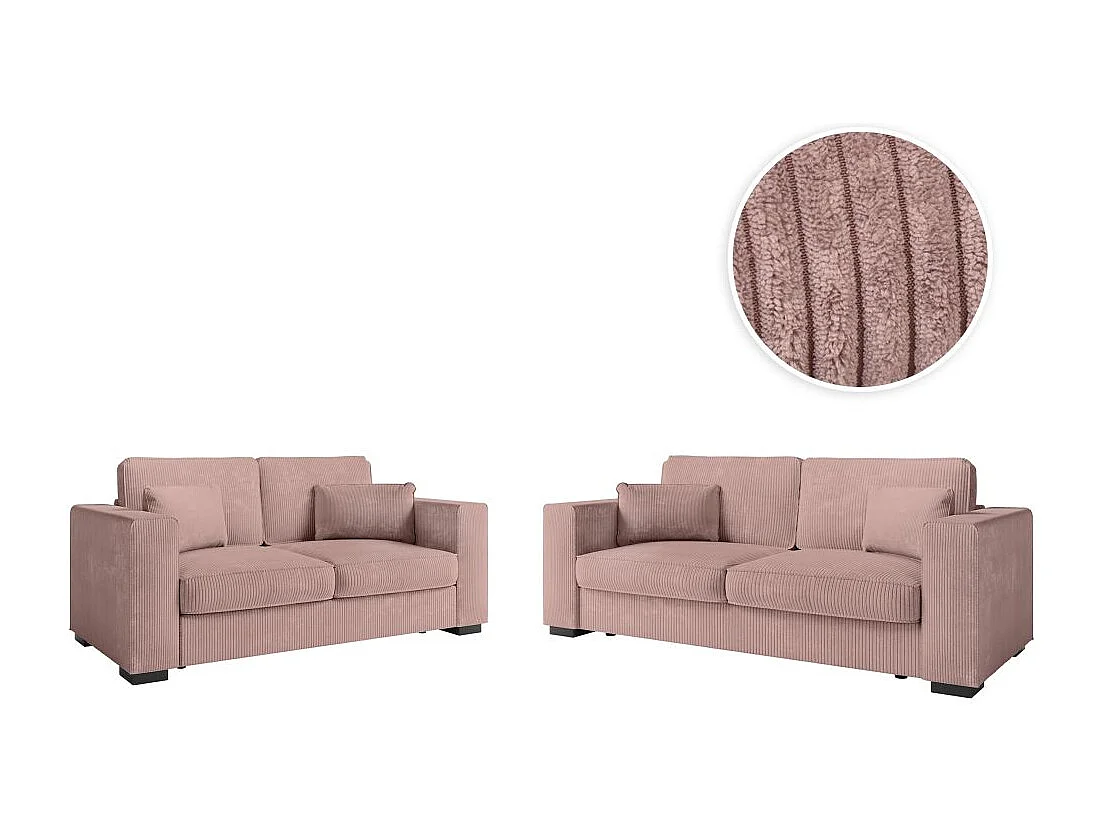 Ensemble canapés 2 places et 3 places Belami en velours côtelé - Rose - Loungitude