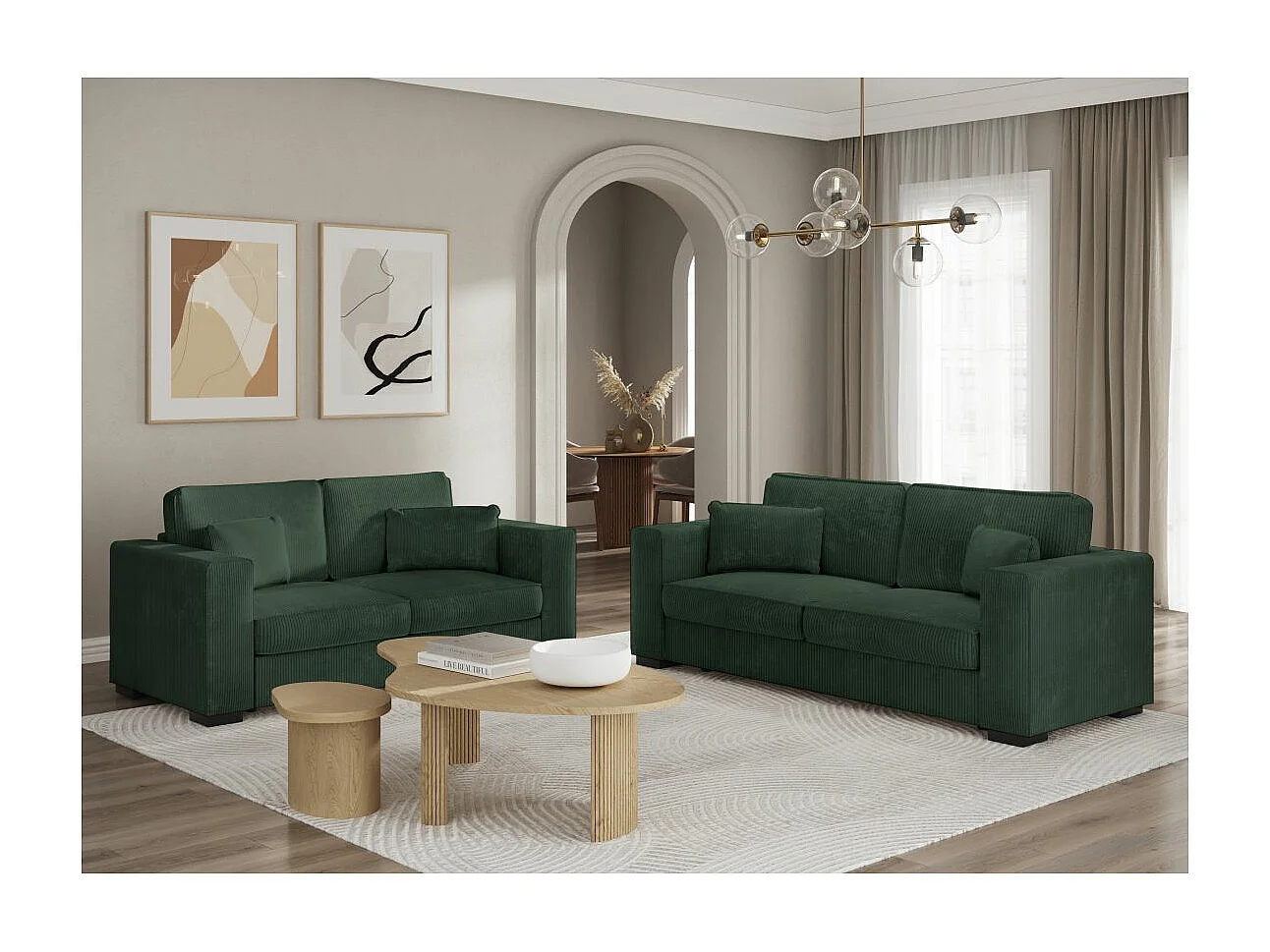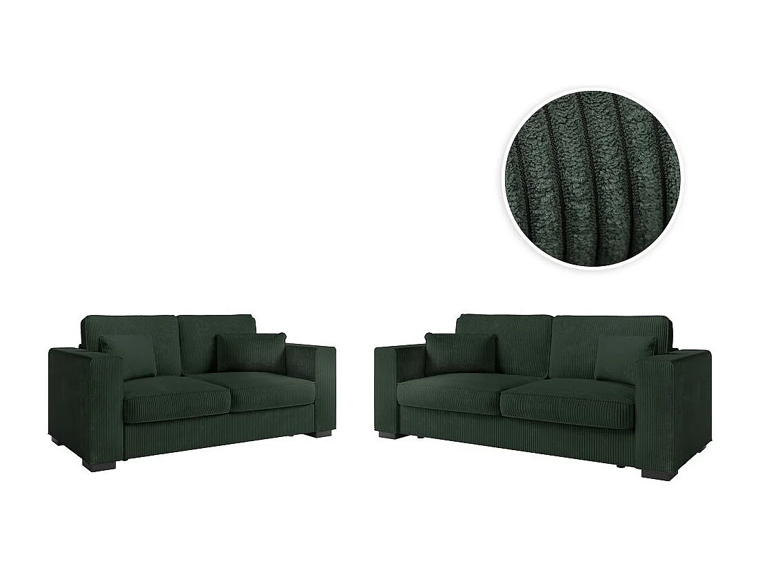 Ensemble canapés 2 places et 3 places Belami en velours côtelé - Vert foncé - Loungitude