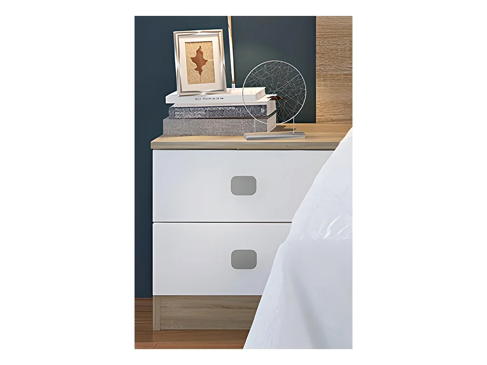 Ensemble chambre à coucher, tête de lit + 2 tables chevets coloris blanc, chêne cambrian