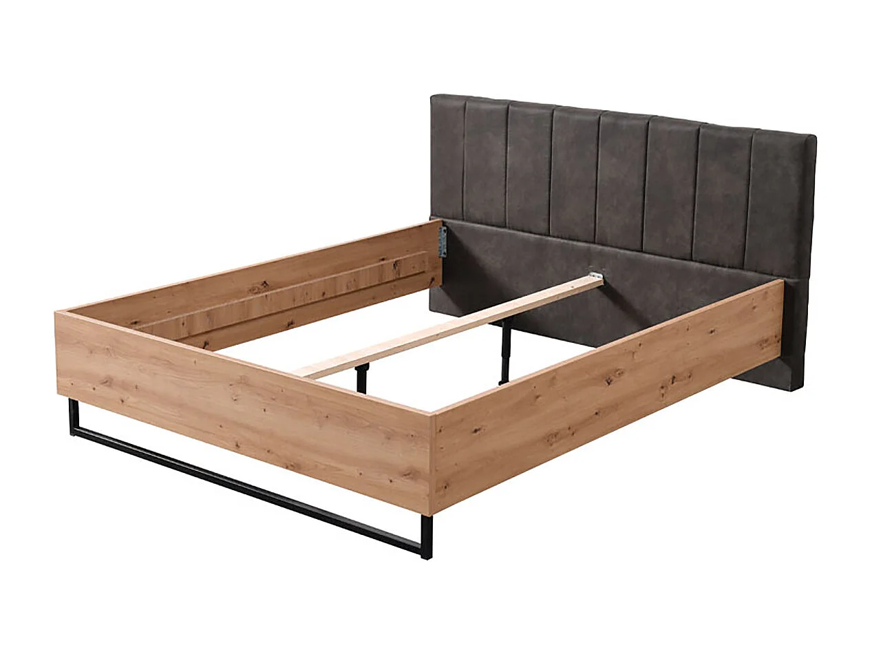 Ensemble chambre lit 160x200 et 2 chevets couleur chêne artisan / noir