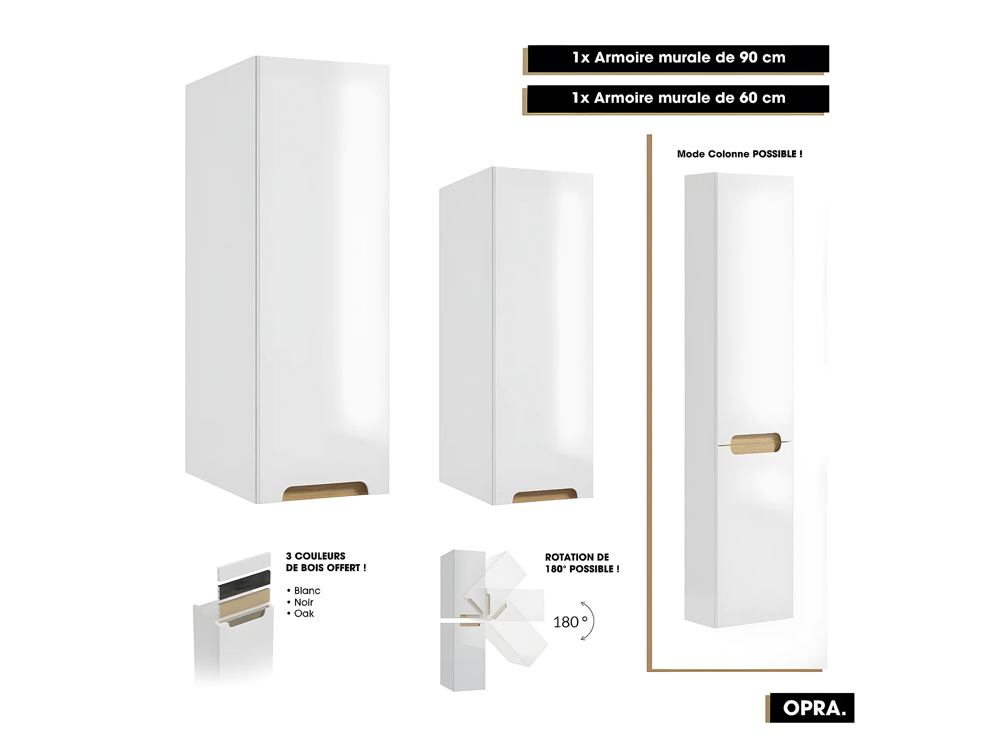 Ensemble complet de salle de bain - Meuble - Armoires - Miroir - Vasque à encastrer avec Siphon OFFERT | OPRA | 60 x 60 x 45 cm