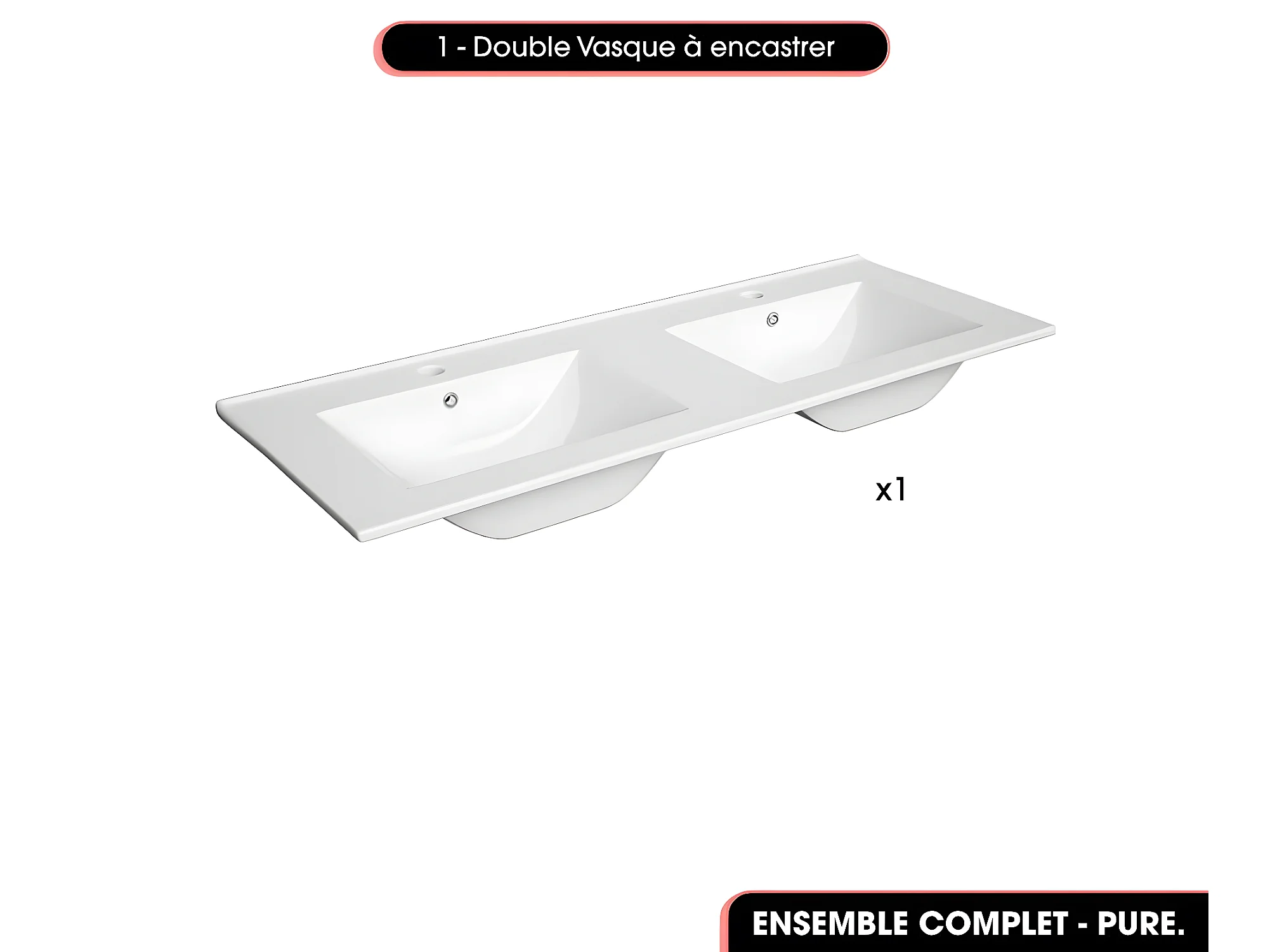 Ensemble complet de salle de bain - Meubles - Armoire - Cubes - Vasques à encastrer avec Siphons OFFERT | PURE | Blanc | 120 x 60 x 45 cm