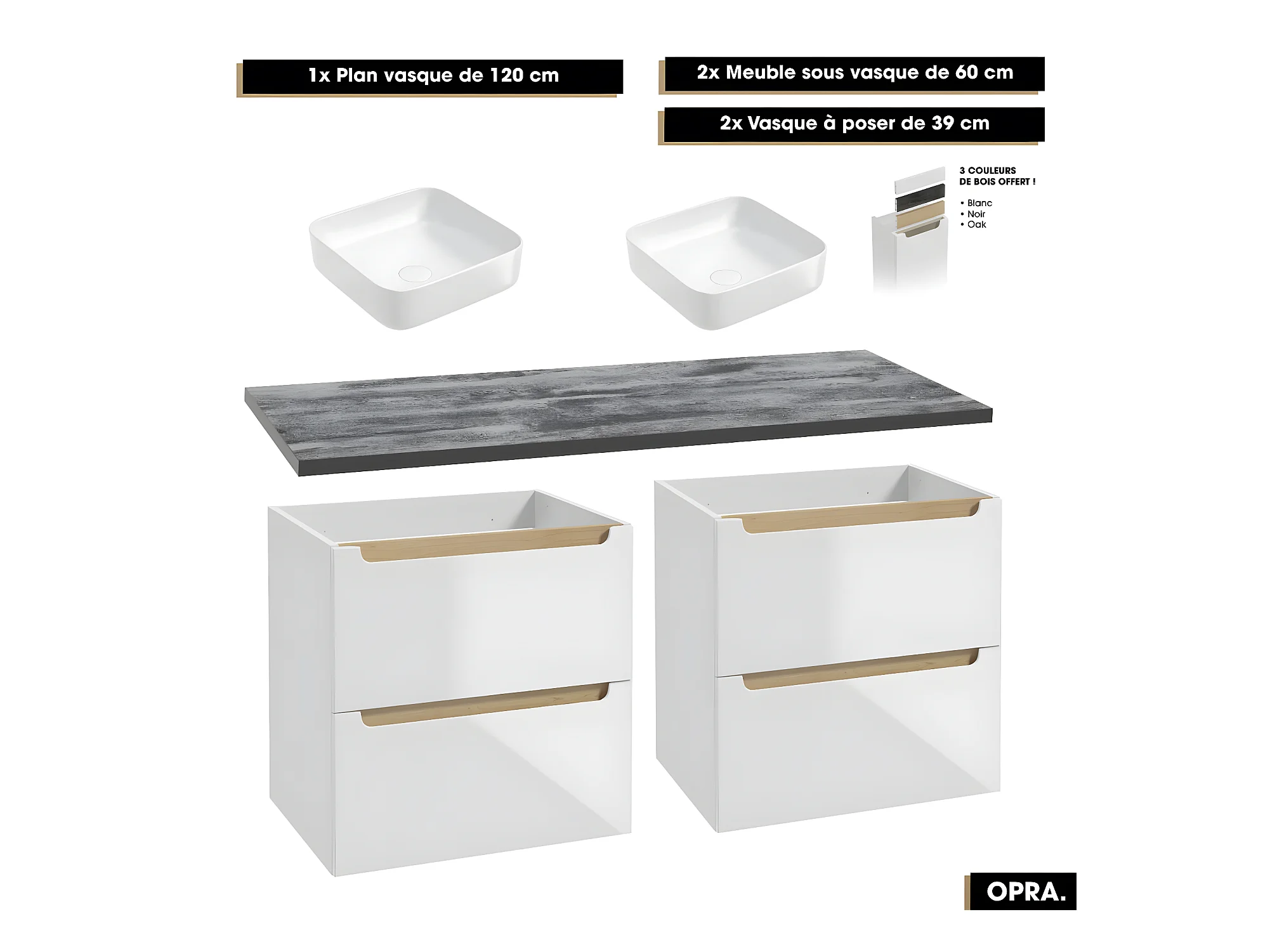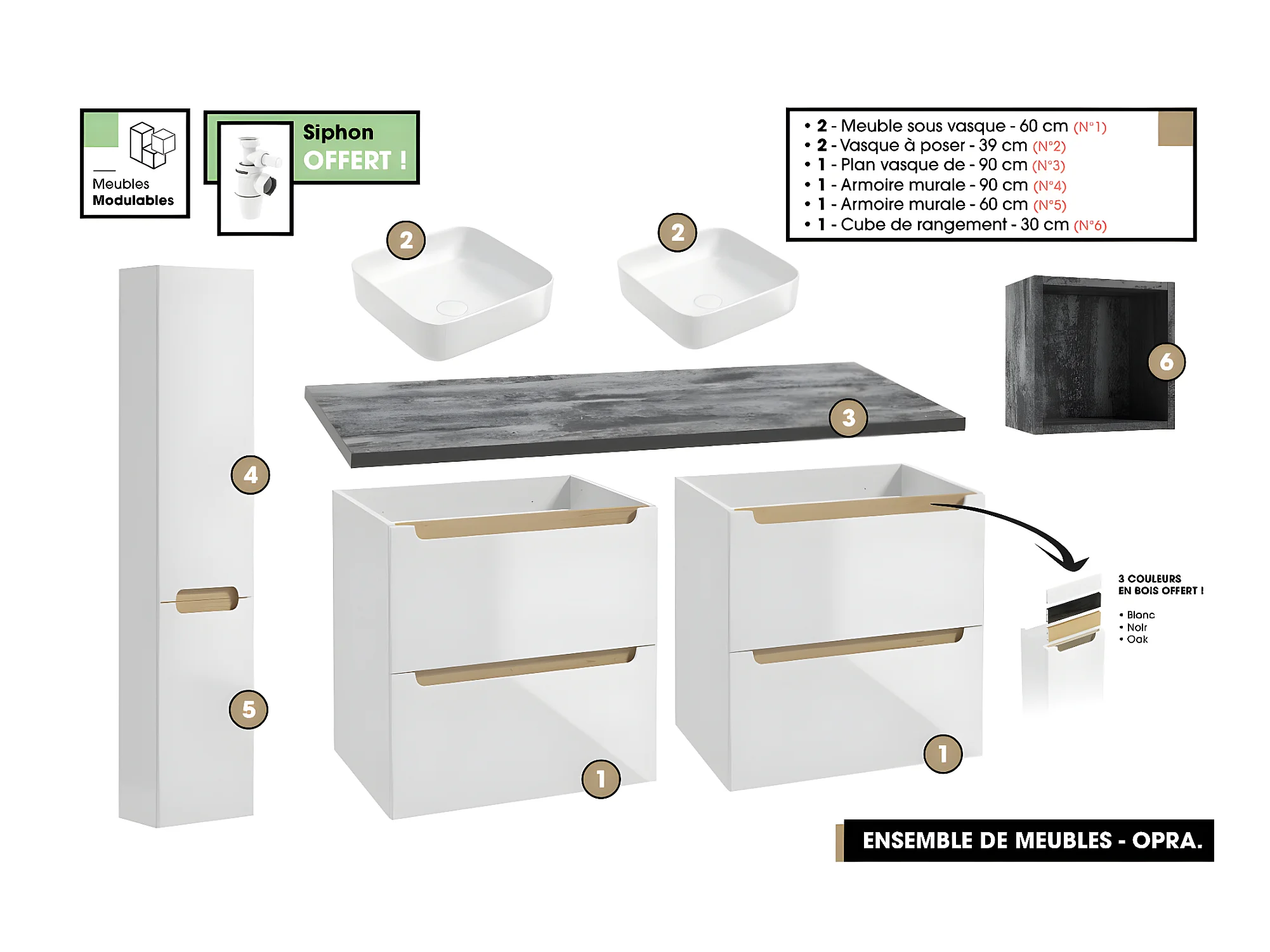 Ensemble complet de salle de bain - Meubles - Armoires - Cube - Vasque à poser avec Siphons OFFERT | OPRA | 120 x 60 x 45 cm