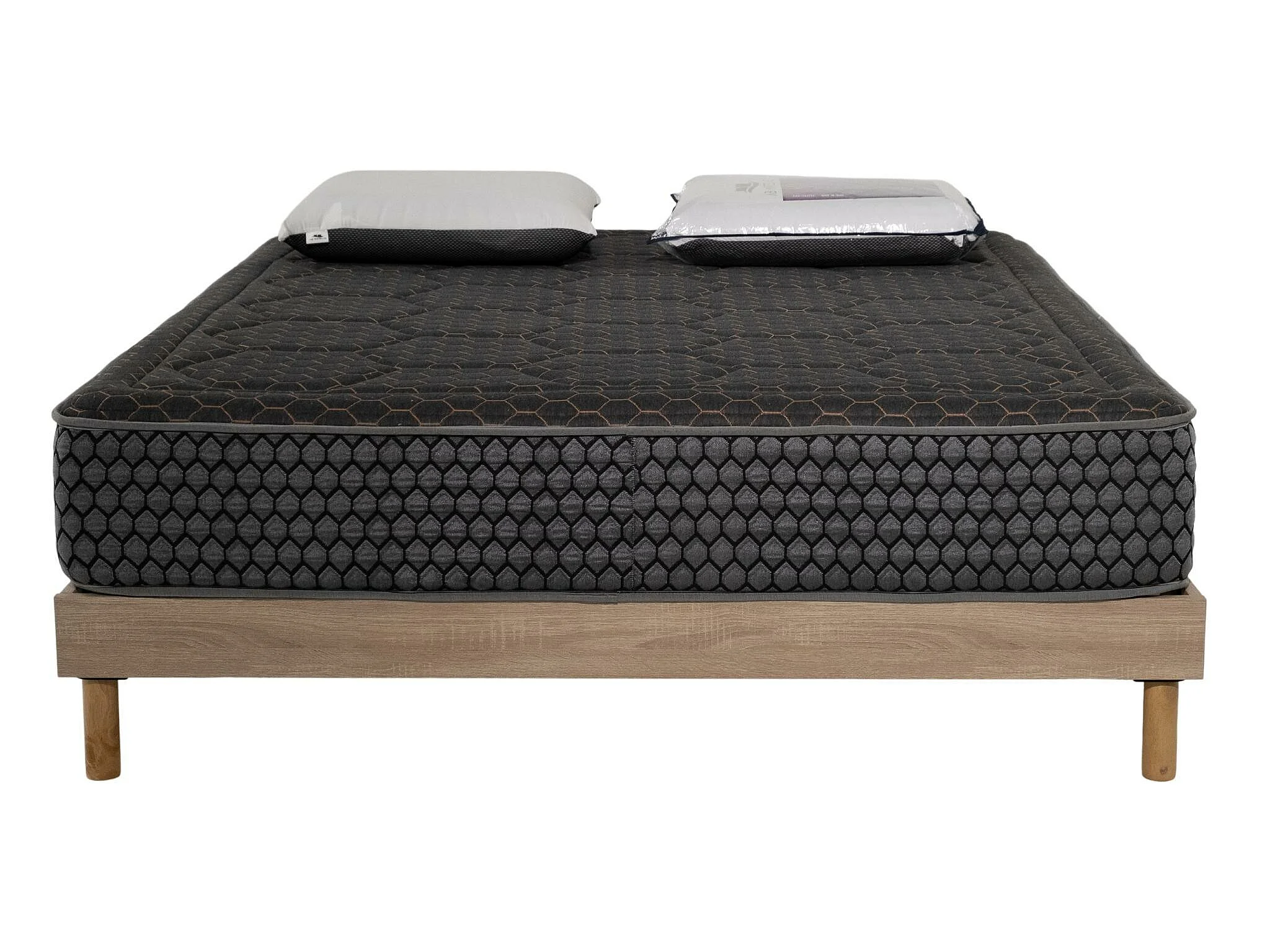 Ensemble Cosmos Black mousse accueil mémoire - 160x200 et 2 Oreillers viscos - Sommier kit chêne