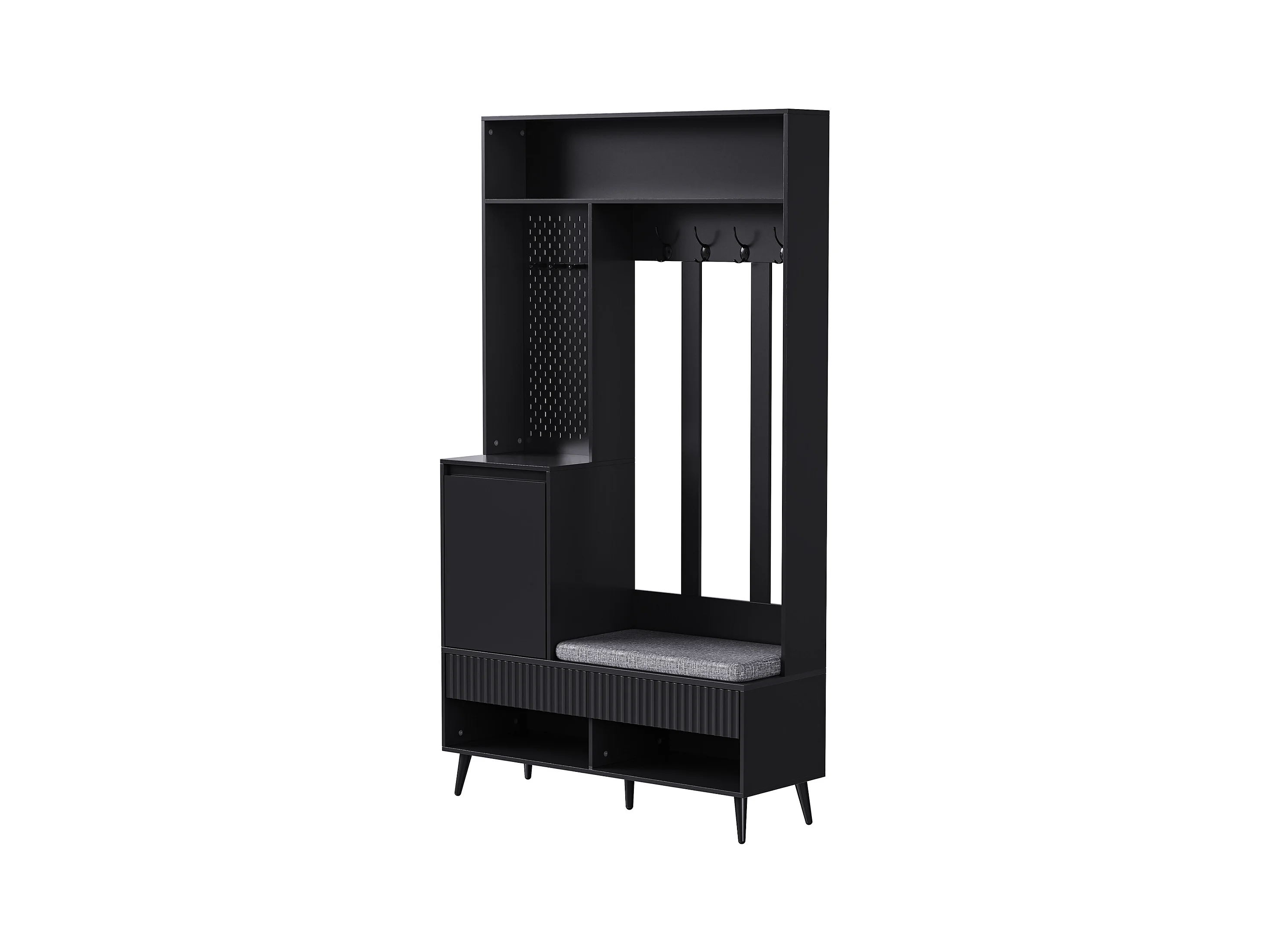 Ensemble d'armoire d'entrée- 100 x 35 x 180 cm - avec banc + 4 crochets + 1 porte + 2 tiroir - MDF - noir
