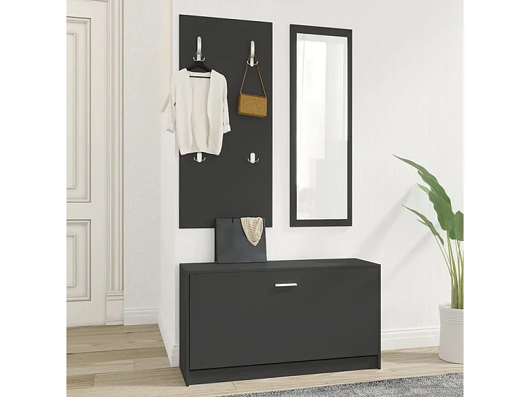 Ensemble d'armoires à chaussures 3-en-1 Noir Bois d'ingénierie