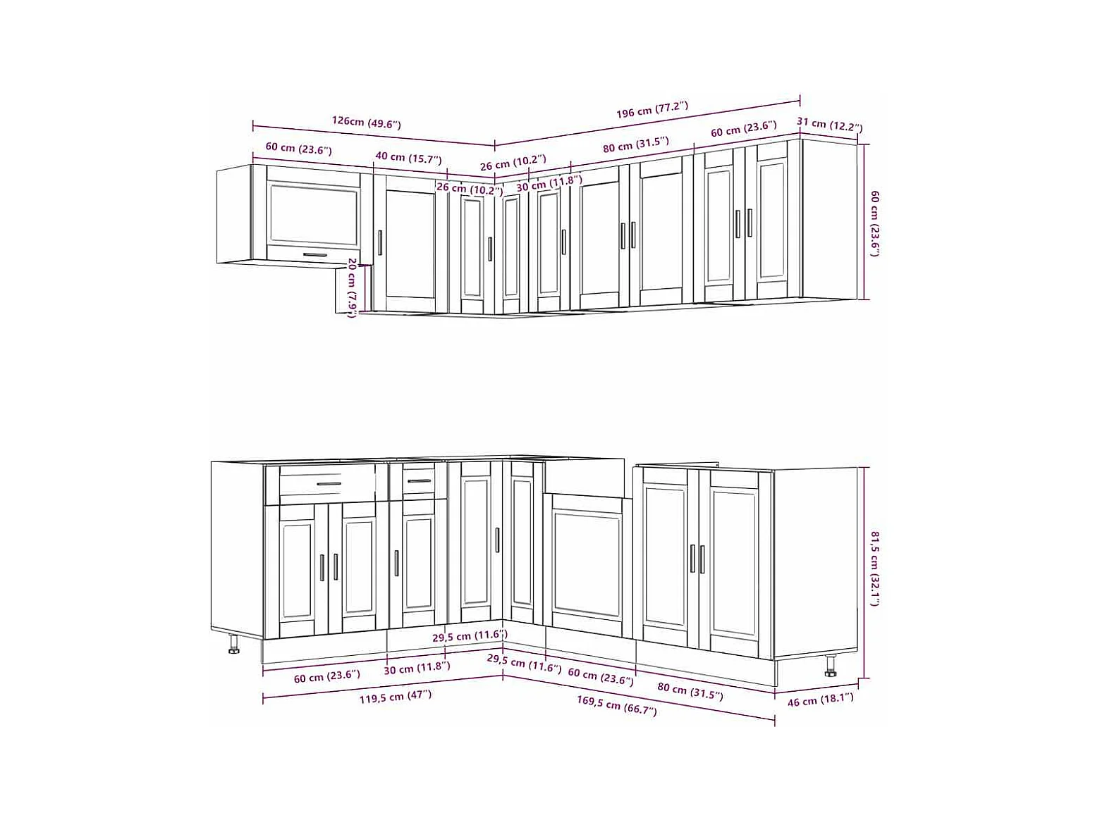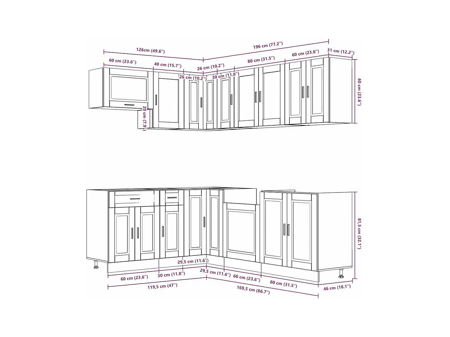 Ensemble d'armoires de cuisine 11 pcs Porto bois d'ingénierie