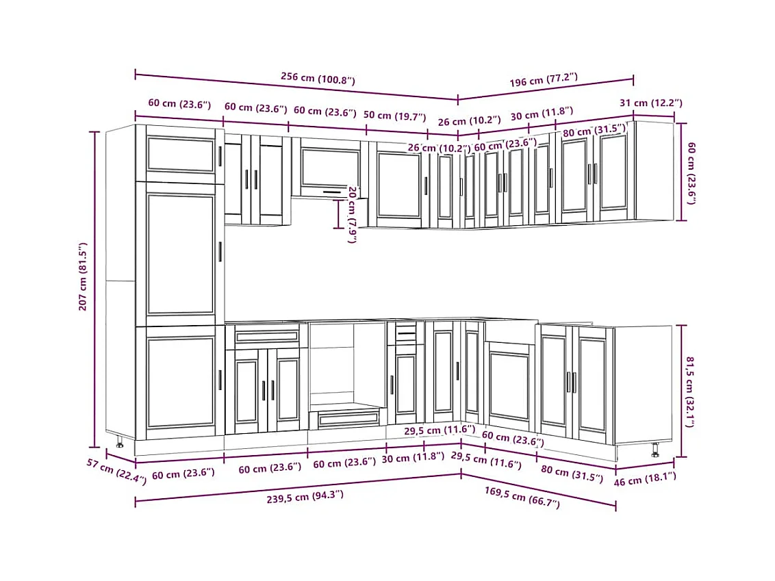 Ensemble d'armoires de cuisine 14 pcs Porto bois d'ingénierie