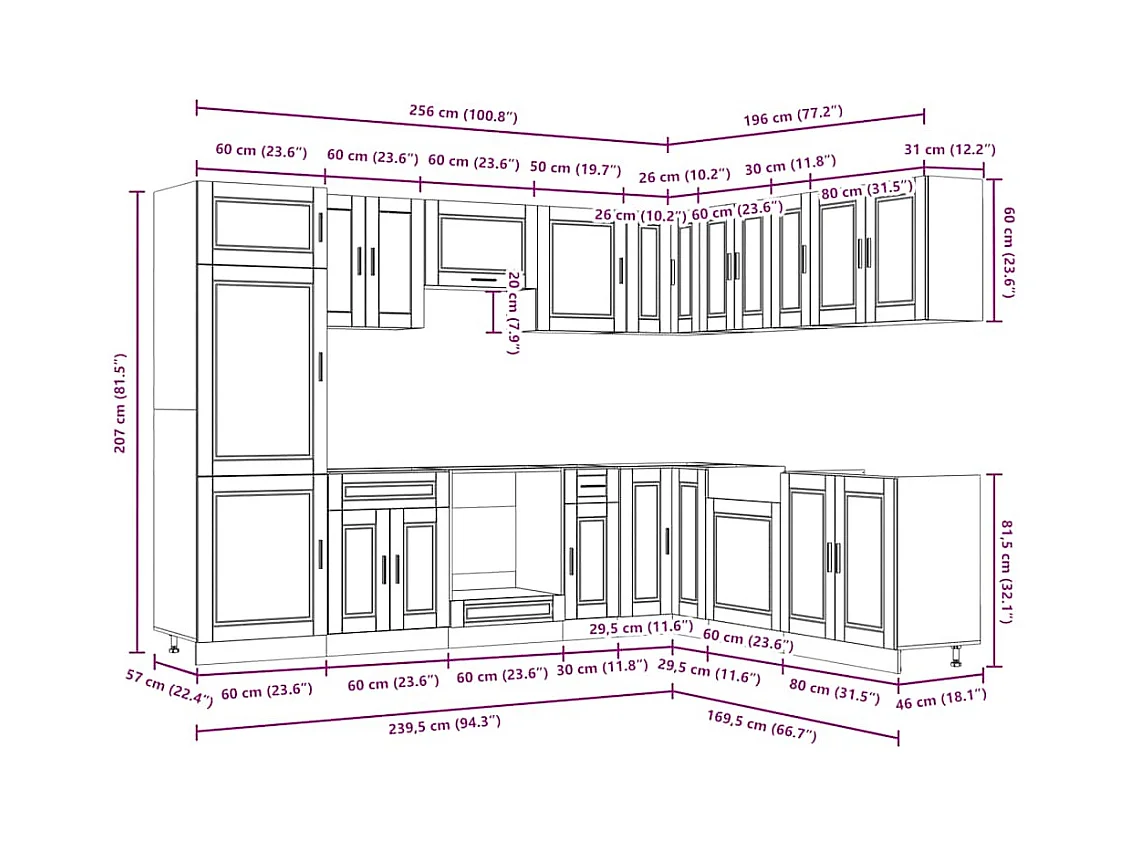 Ensemble d'armoires de cuisine 14 pcs Porto bois d'ingénierie