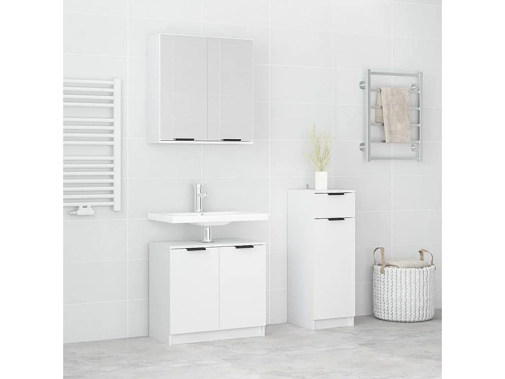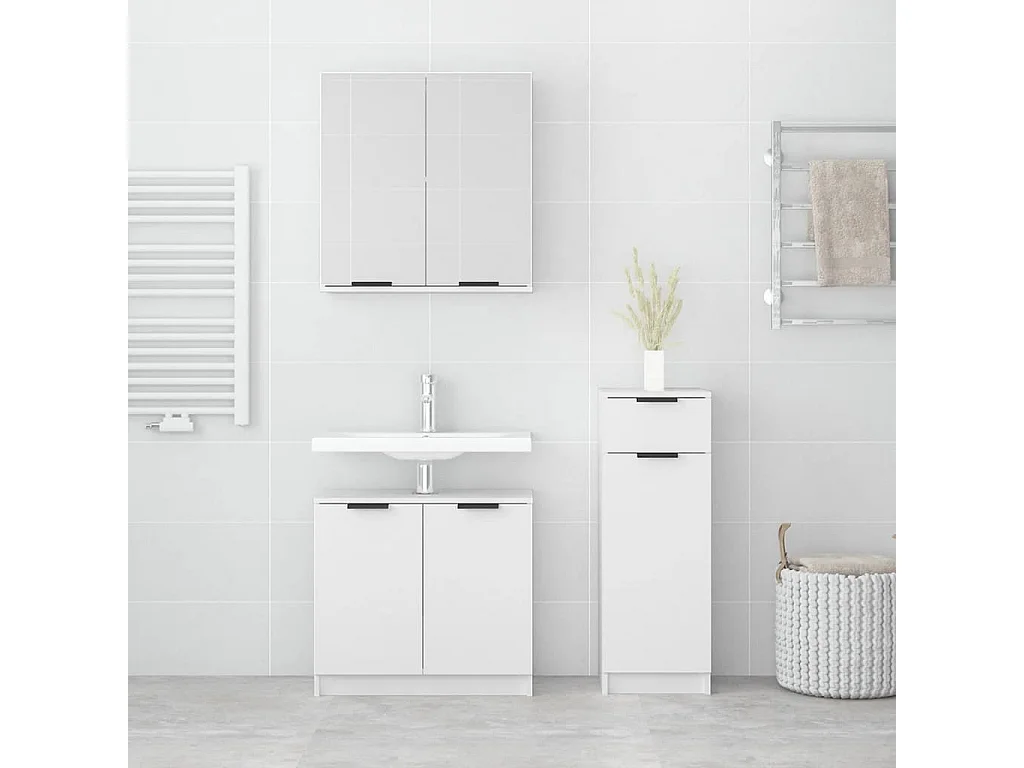 Ensemble d'armoires salle de bain 3 pcs blanc bois d'ingénierie