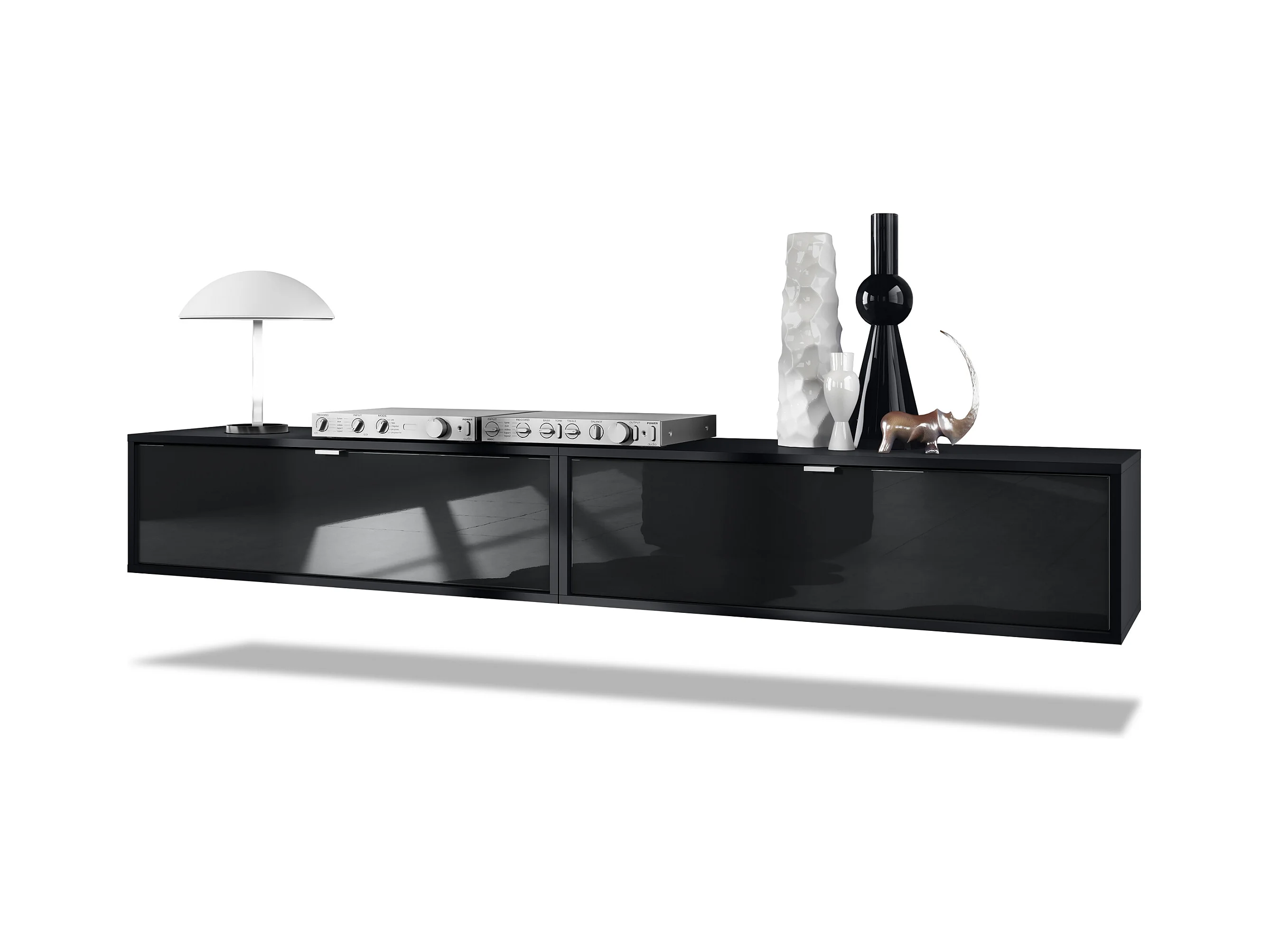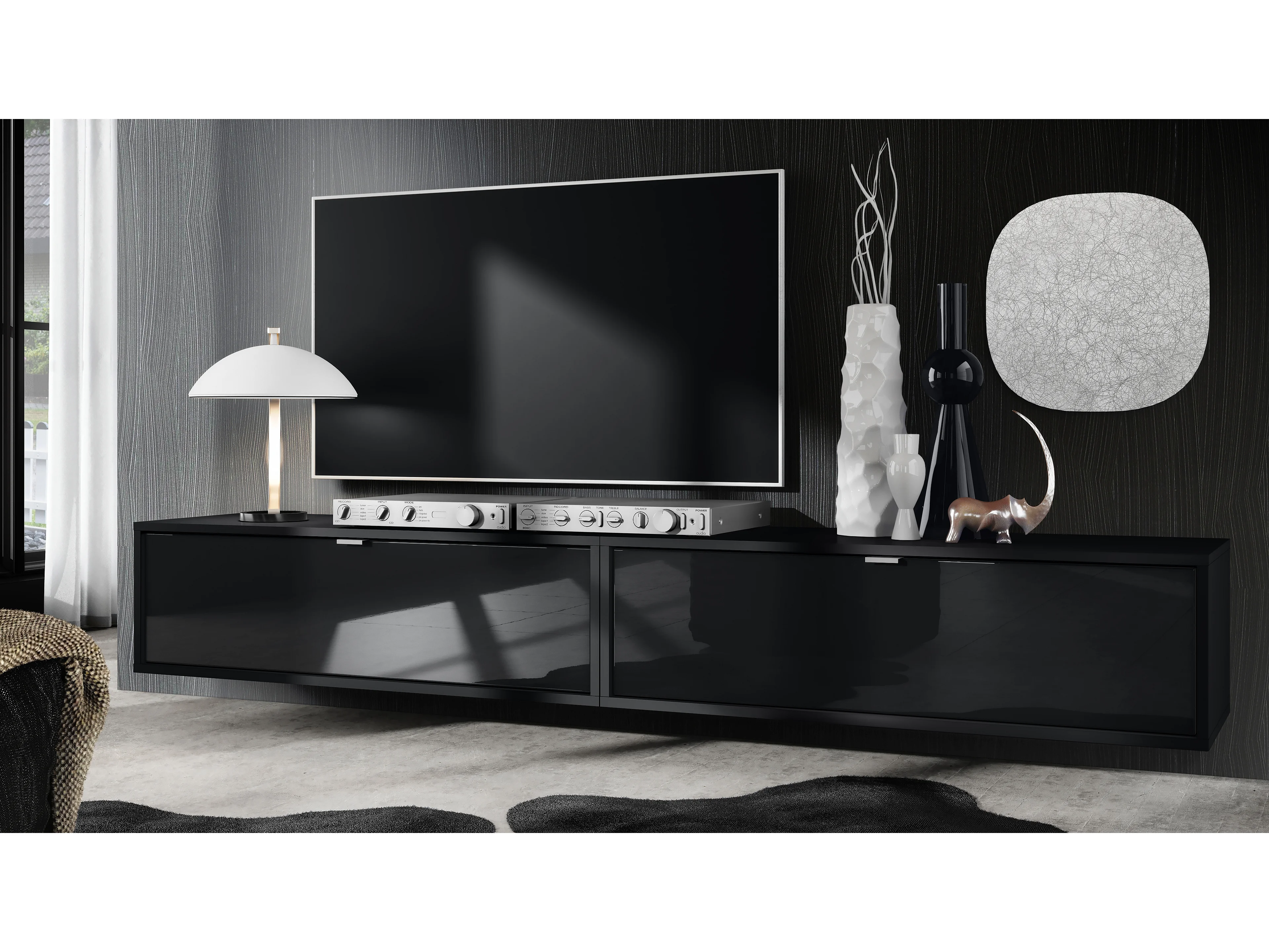 Ensemble de 2 set meuble TV Lana 100, lowboards de 100 x 29 x 37 cm chacun avec beaucoup d'espace de rangement, caisson en Noir mat, façades en Noir haute brillance