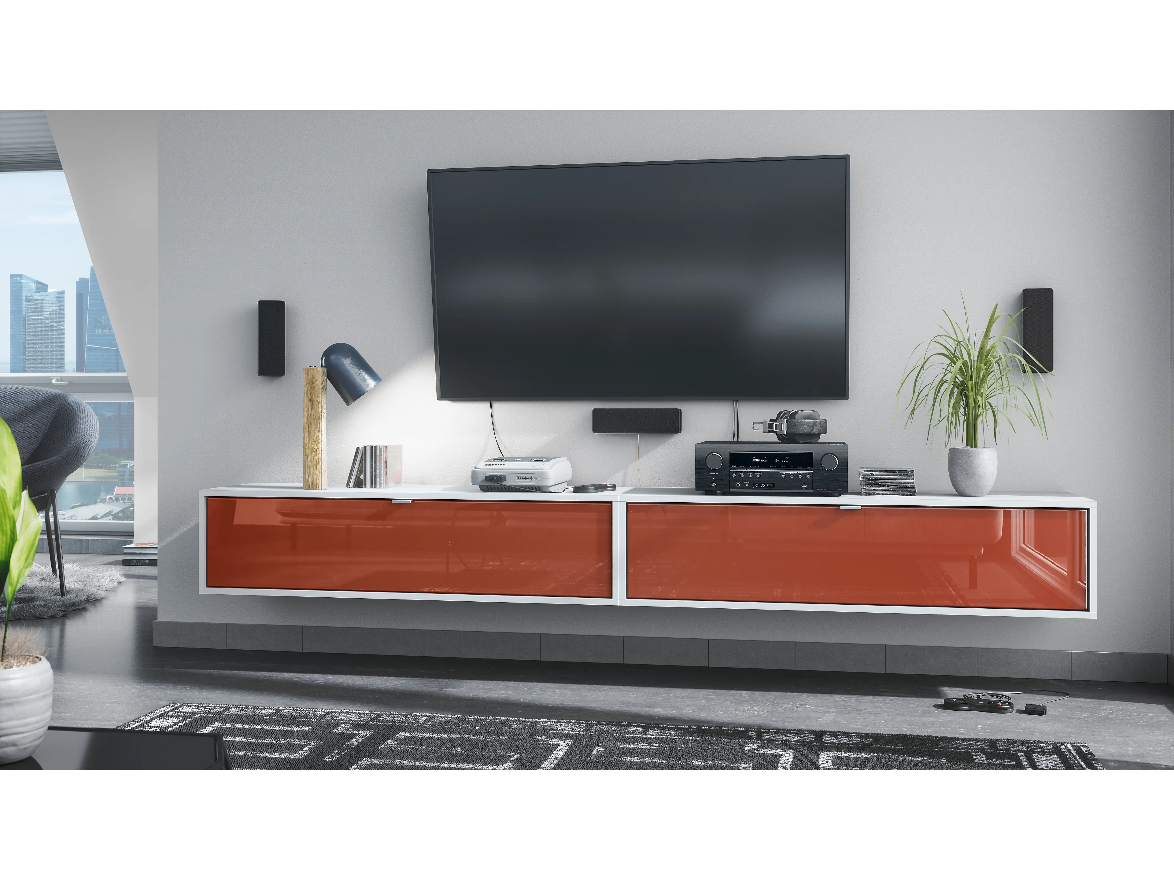 Ensemble de 2 set meuble TV Lana 120, lowboards de 120 x 29 x 37 cm chacun avec beaucoup d'espace de rangement, caisson en Blanc mat, façades en Bordeaux brillant