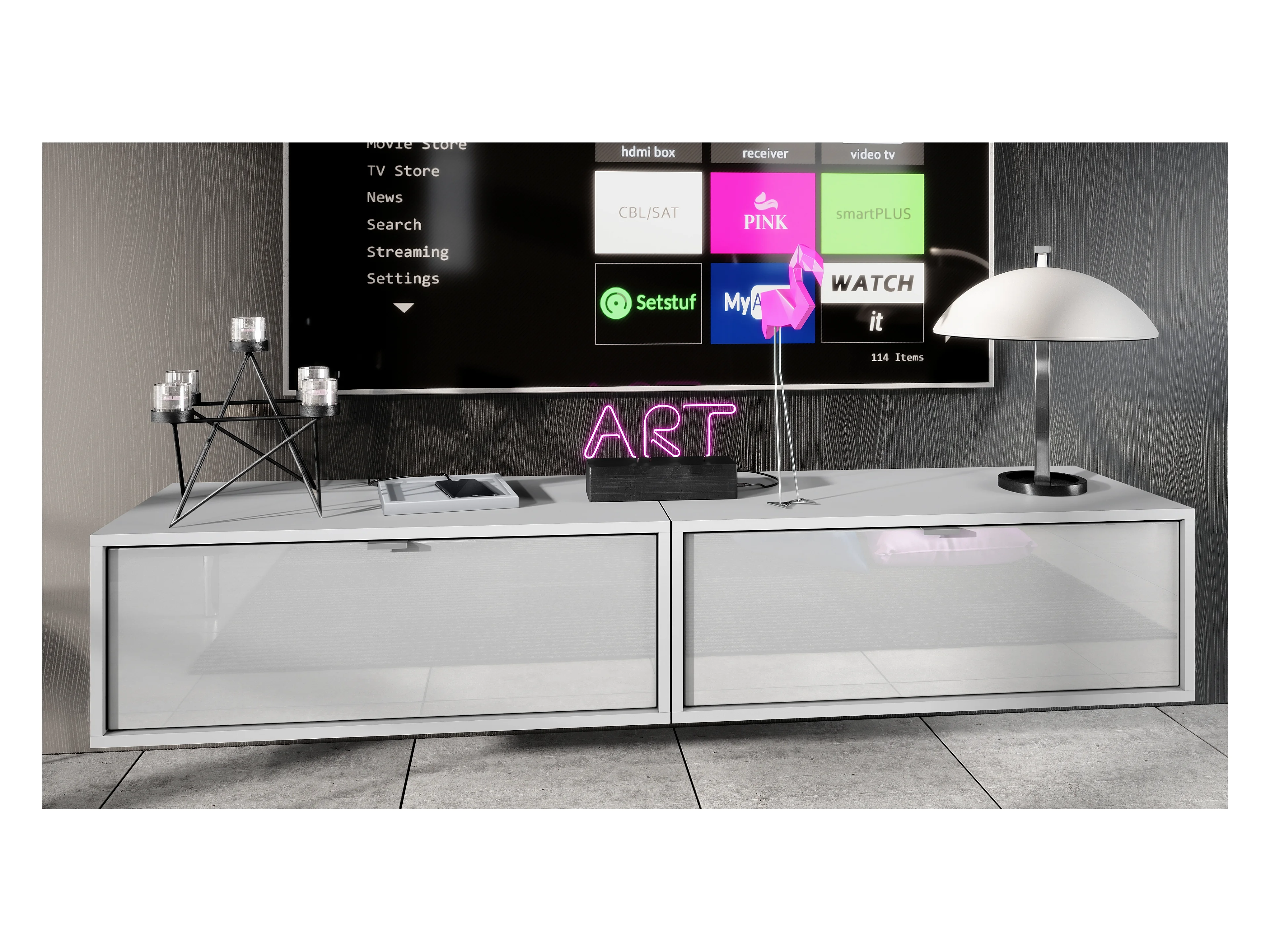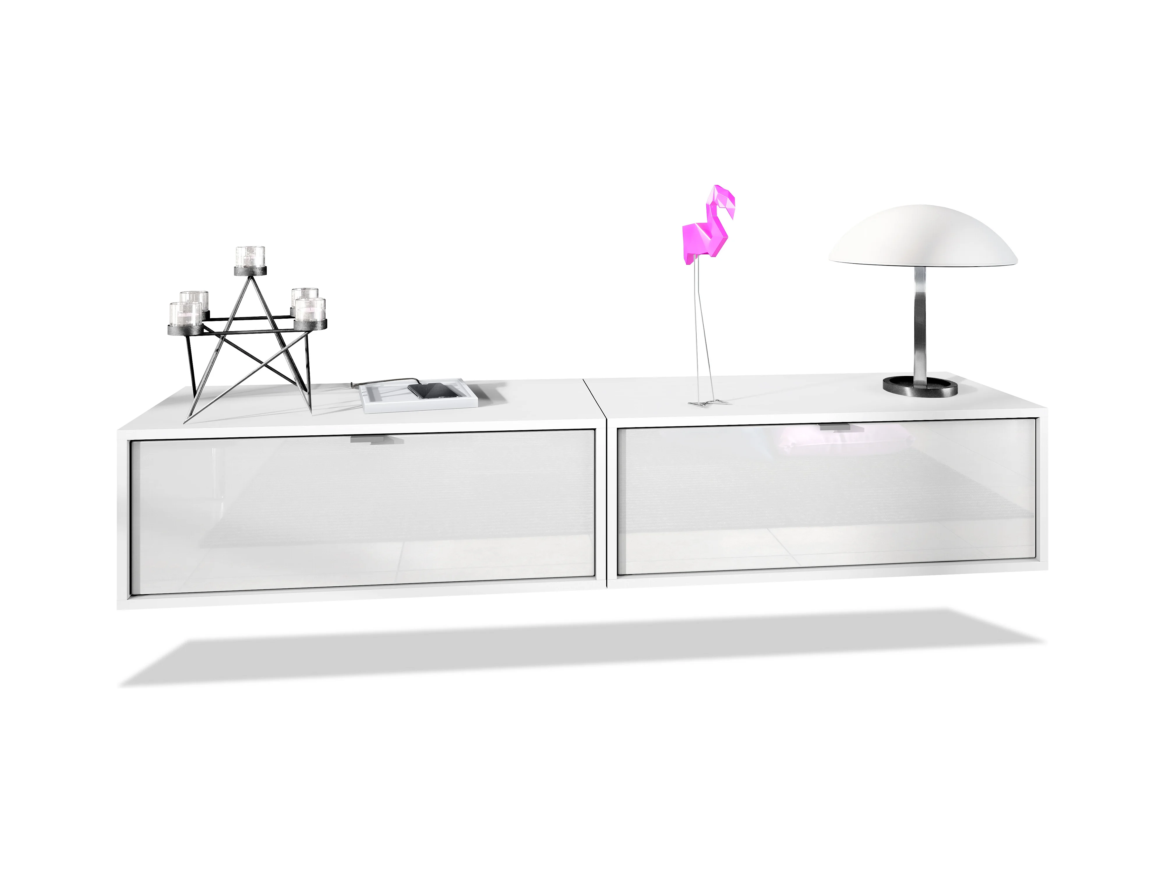 Ensemble de 2 set meuble TV Lana 80, lowboards de 80 x 29 x 37 cm chacun avec beaucoup d'espace de rangement, caisson en Blanc mat, façades en Blanc haute brillance