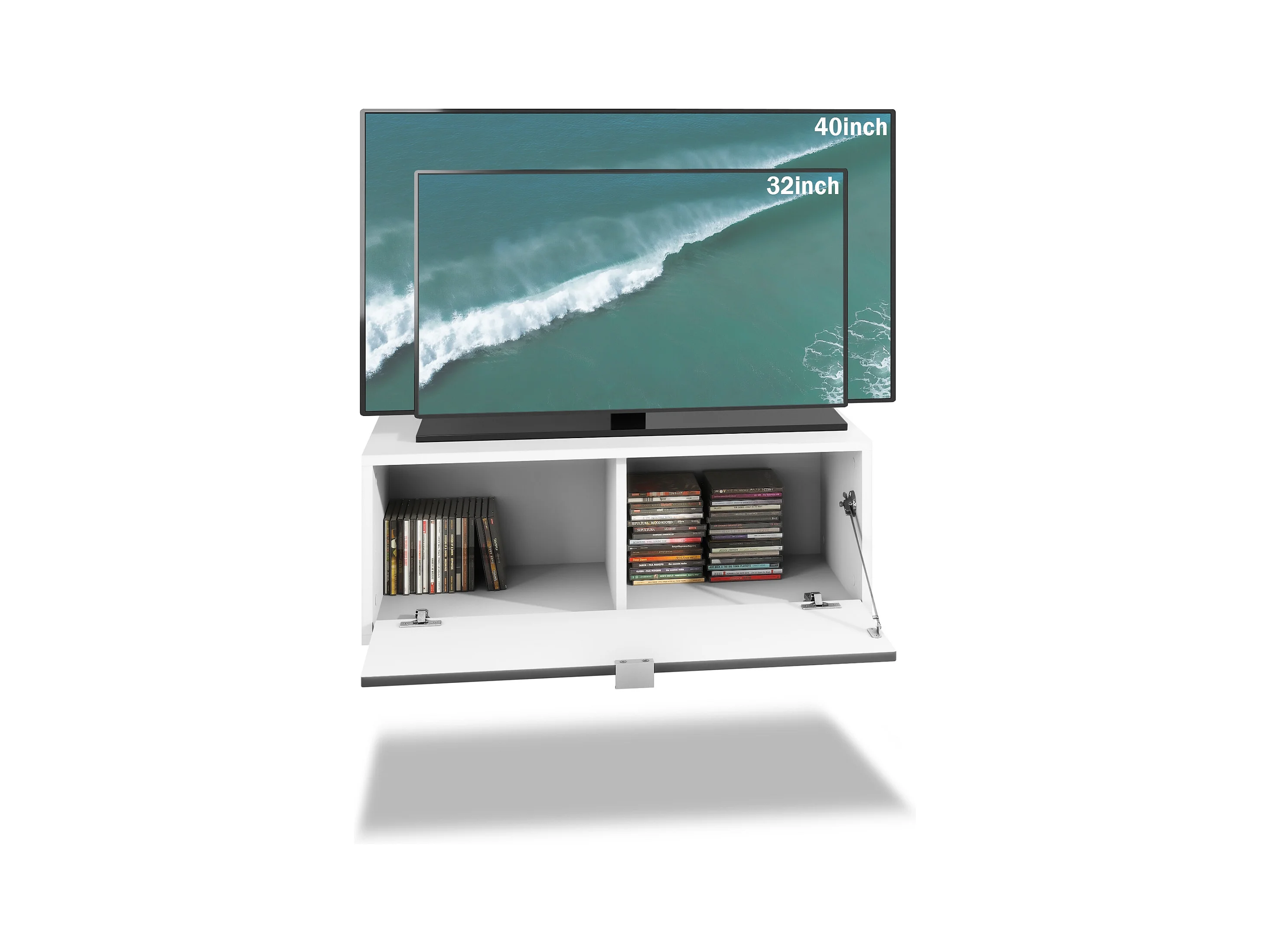 Ensemble de 2 set meuble TV Lana 80, lowboards de 80 x 29 x 37 cm chacun avec beaucoup d'espace de rangement, caisson en Blanc mat, façades en Gris sable brillant