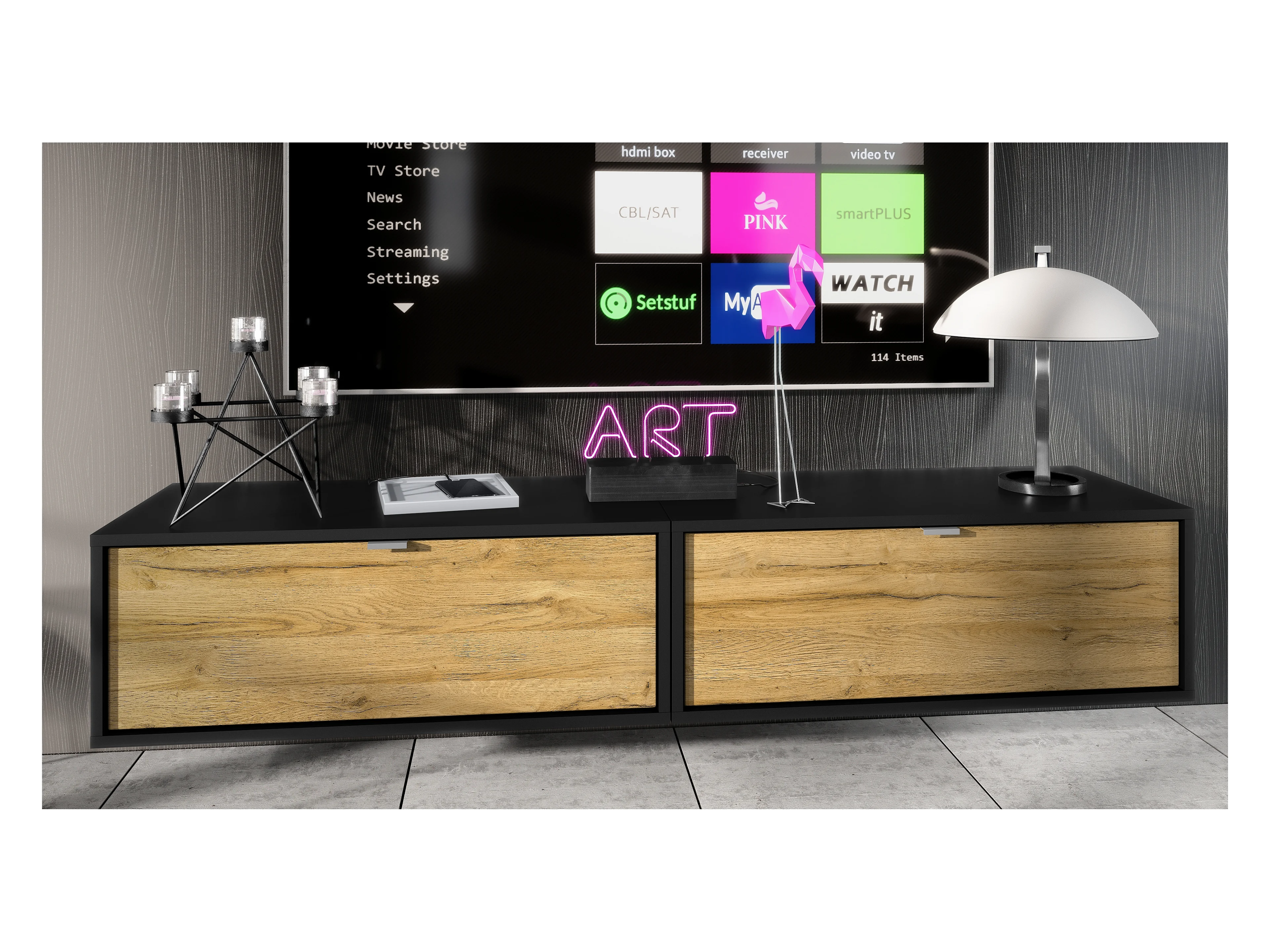 Ensemble de 2 set meuble TV Lana 80, lowboards de 80 x 29 x 37 cm chacun avec beaucoup d'espace de rangement, caisson en Noir mat, façades en Chêne Nature