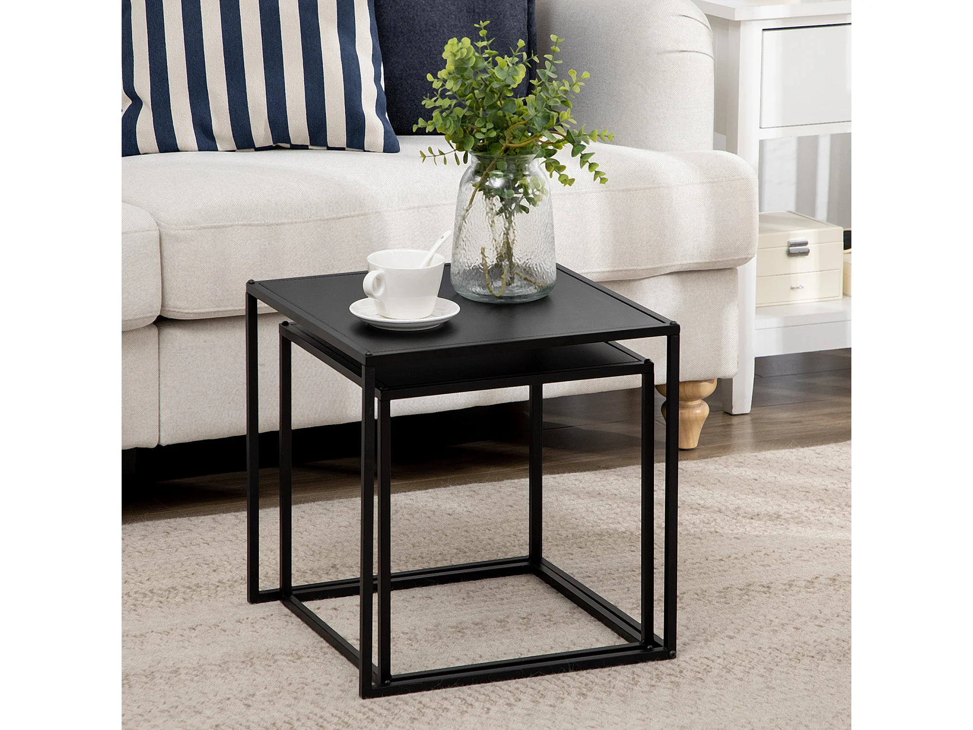 Ensemble de 2 Tables Basses, Design Moderne, Structure en Acier, Noir, (120x59x45 cm)