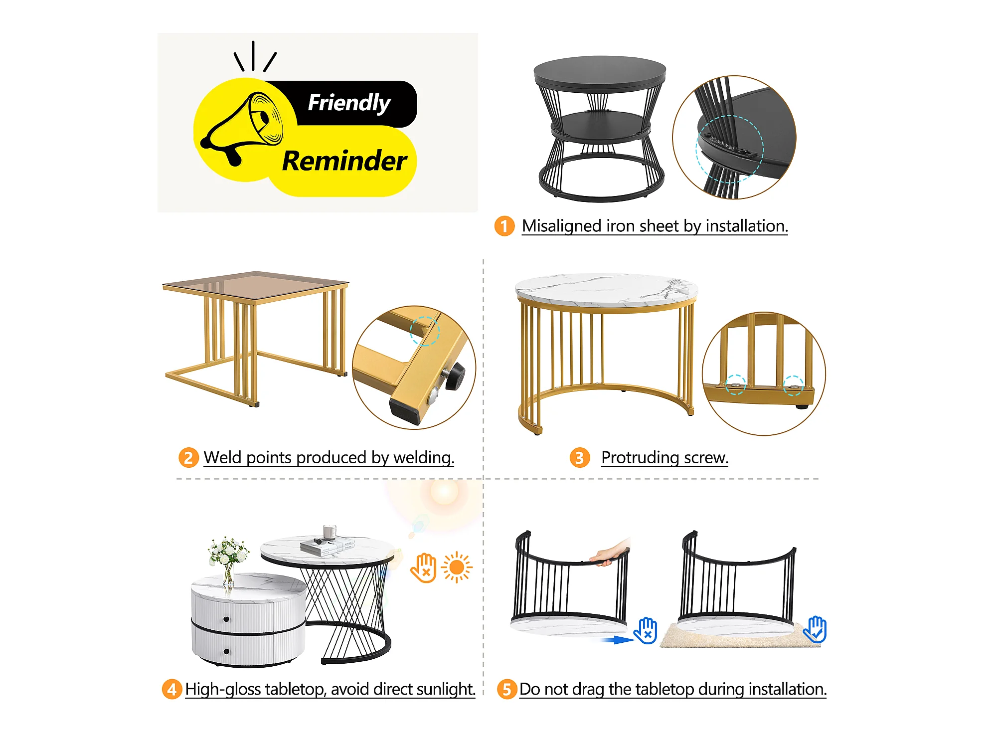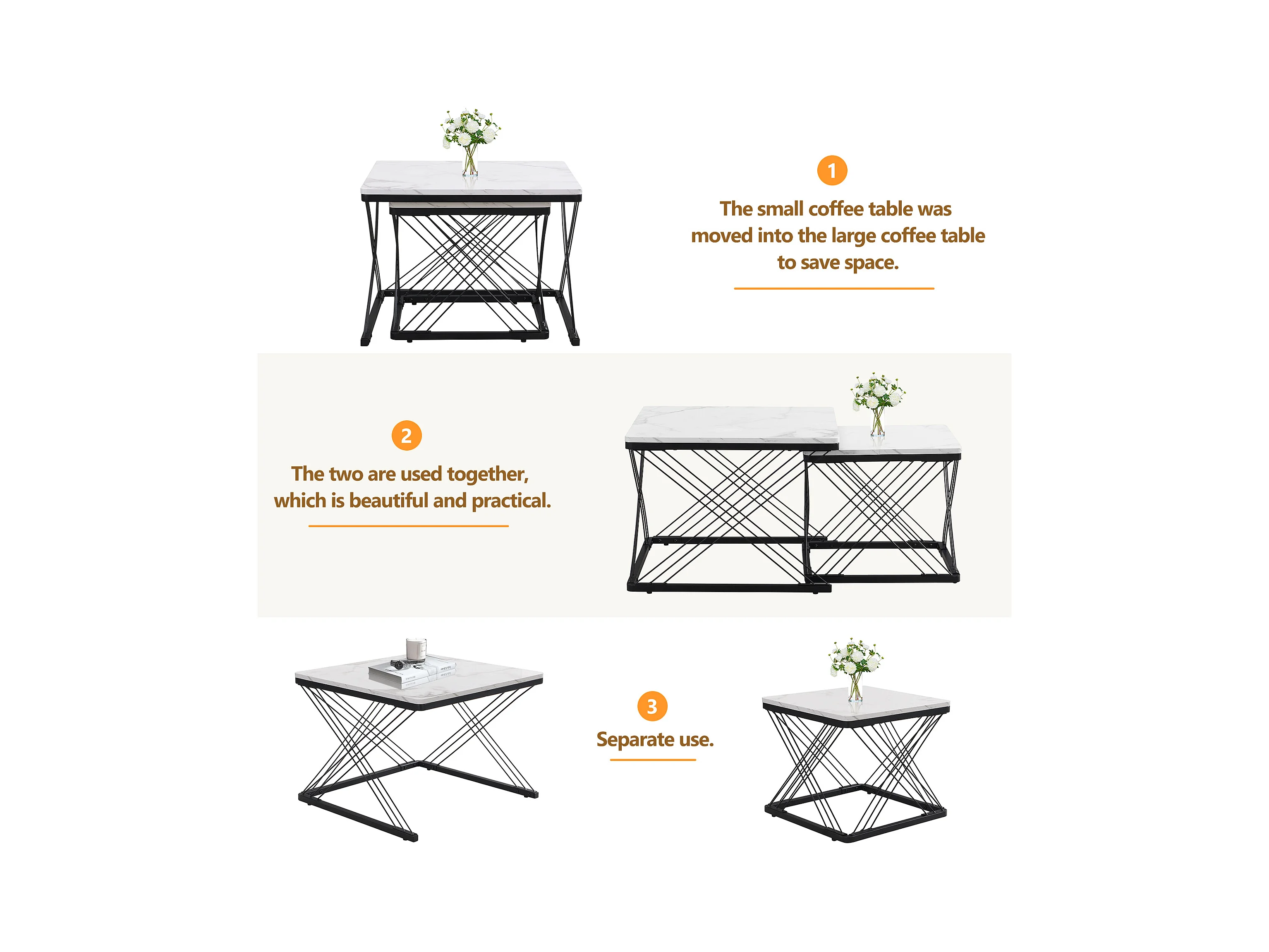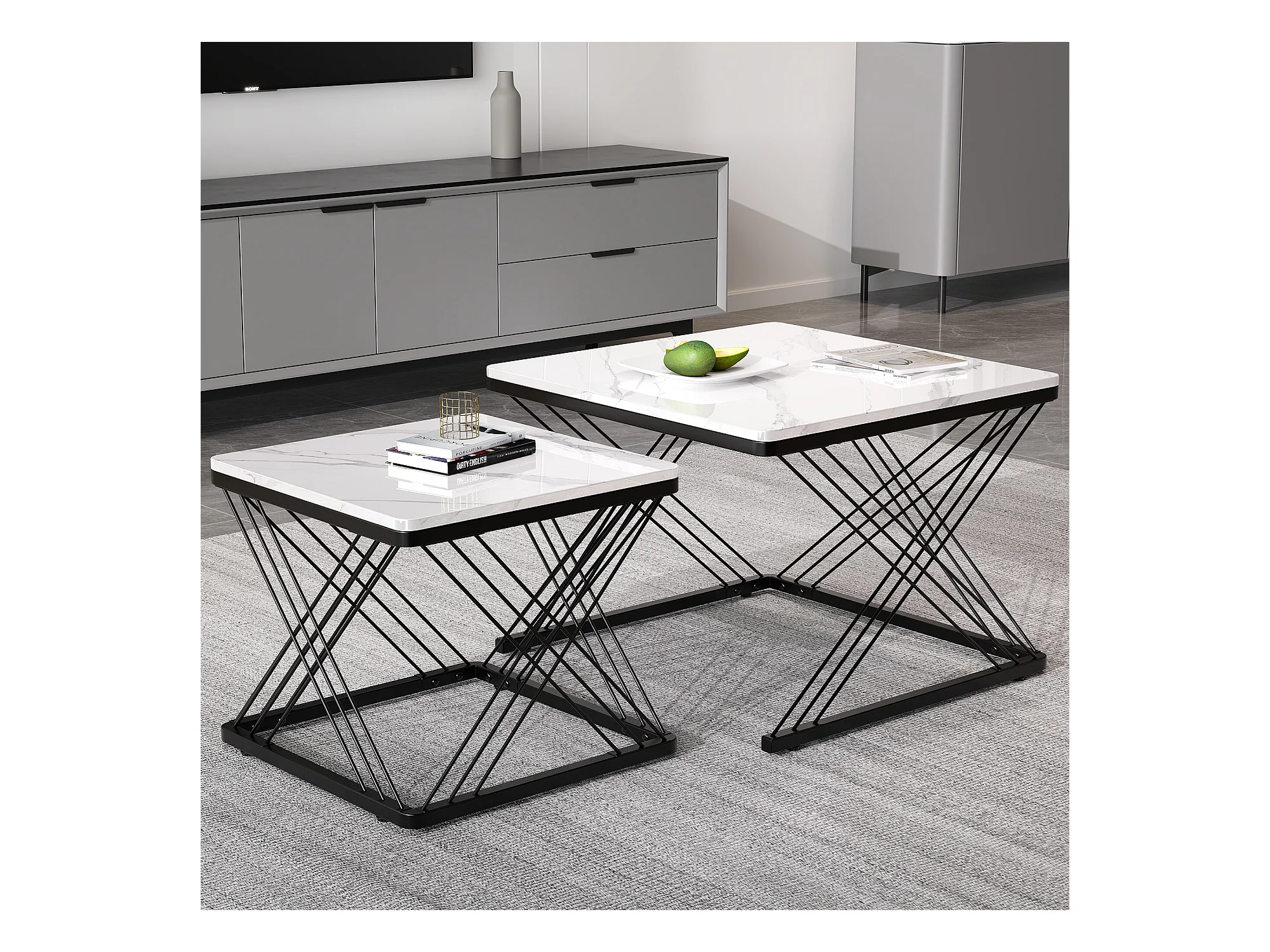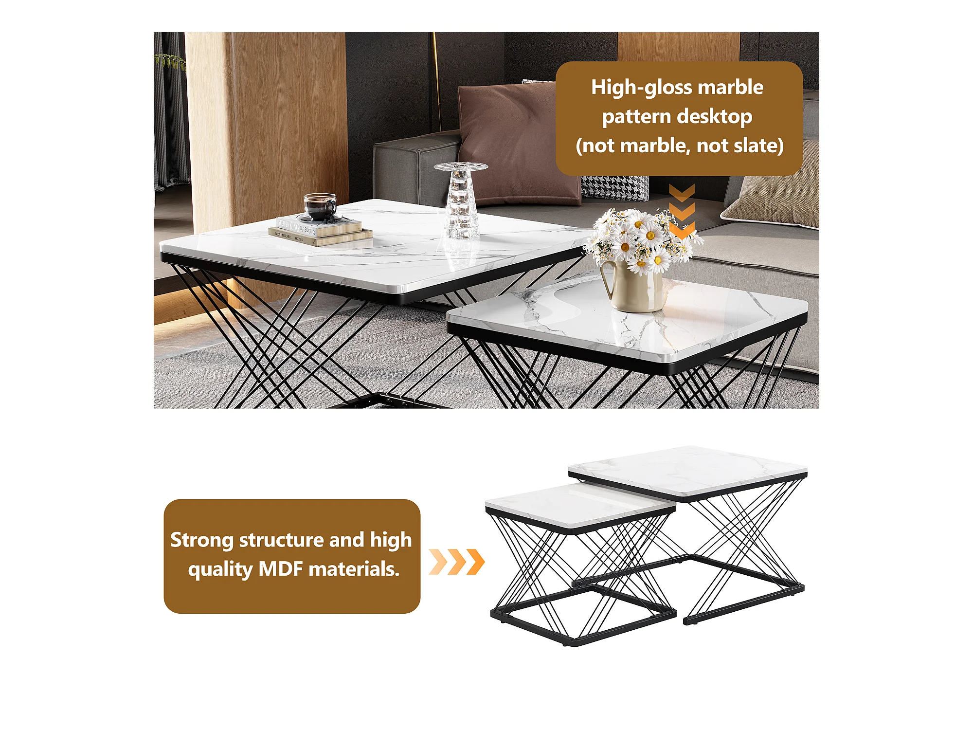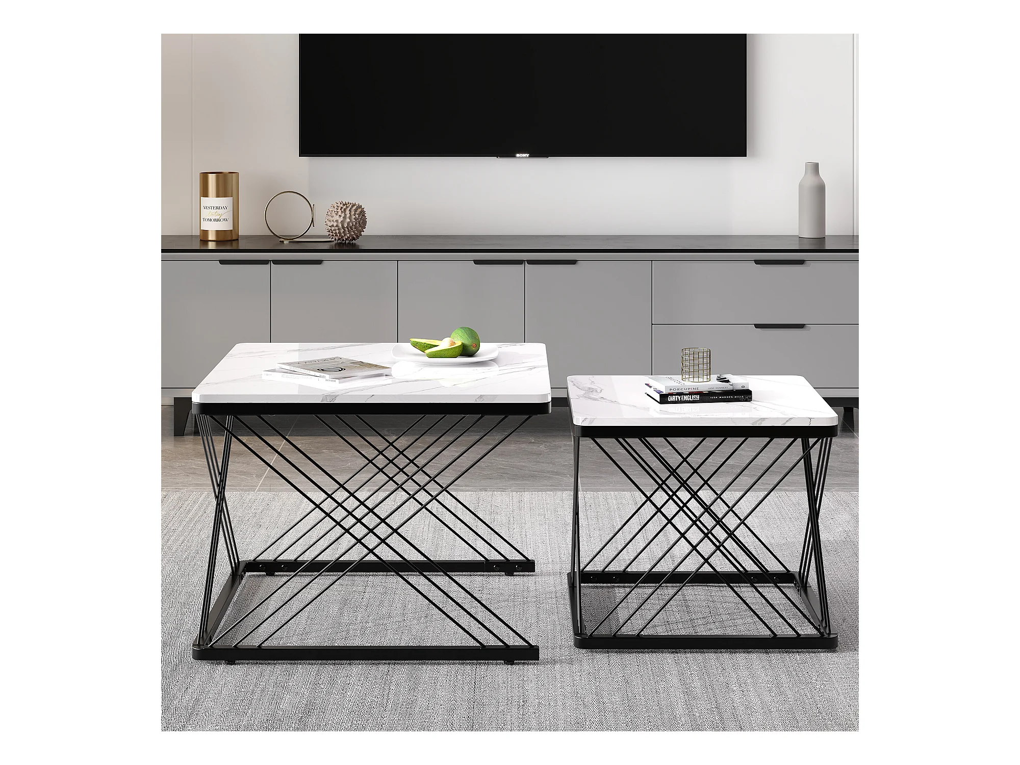 URBAN MEUBLE Ensemble de 2 tables basses gigognes élégantes effet marbre brillant