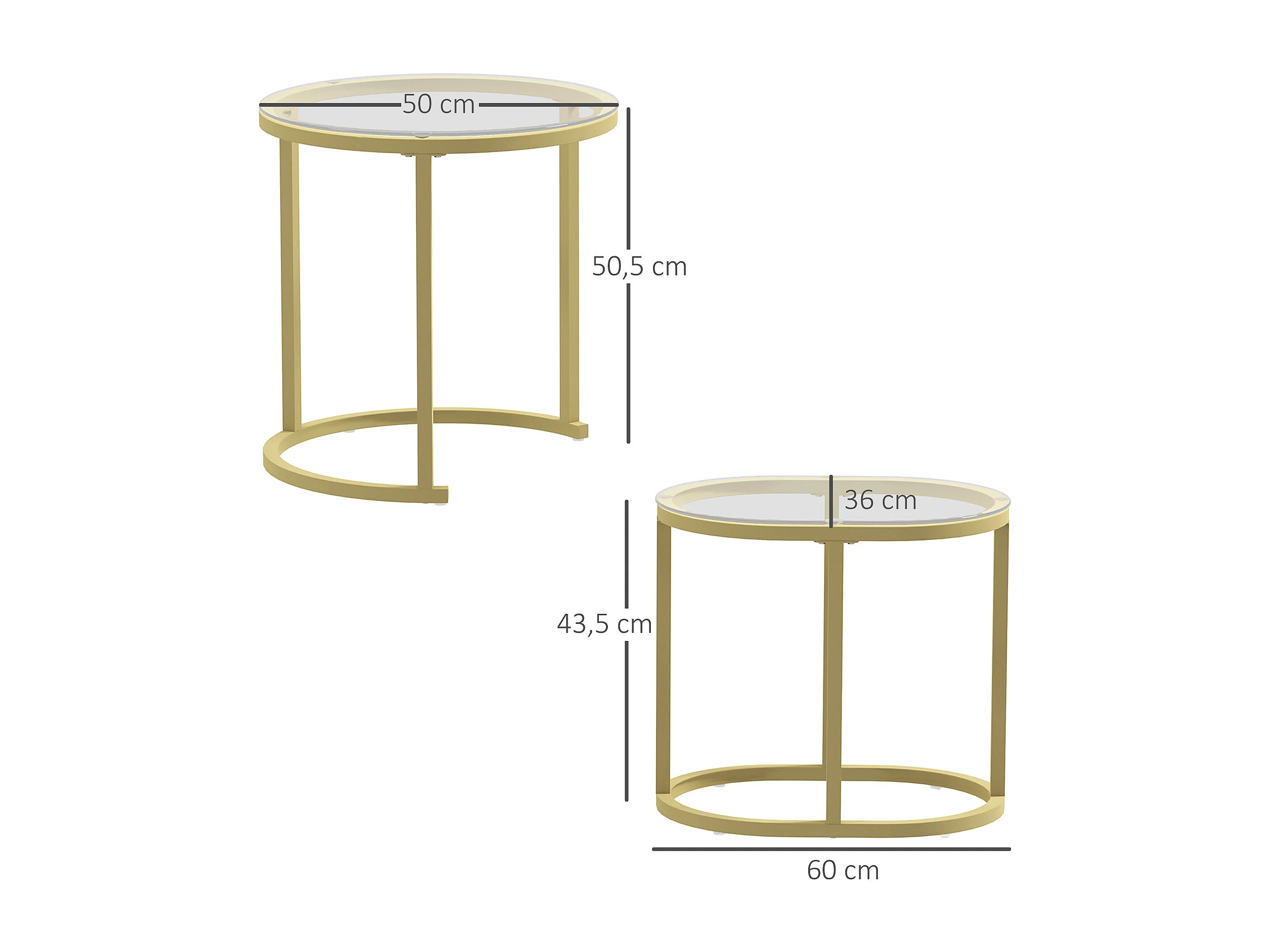 Ensemble de 2 tables basses rondes empilables, structure en acier, doré (50x50x50.5 cm)