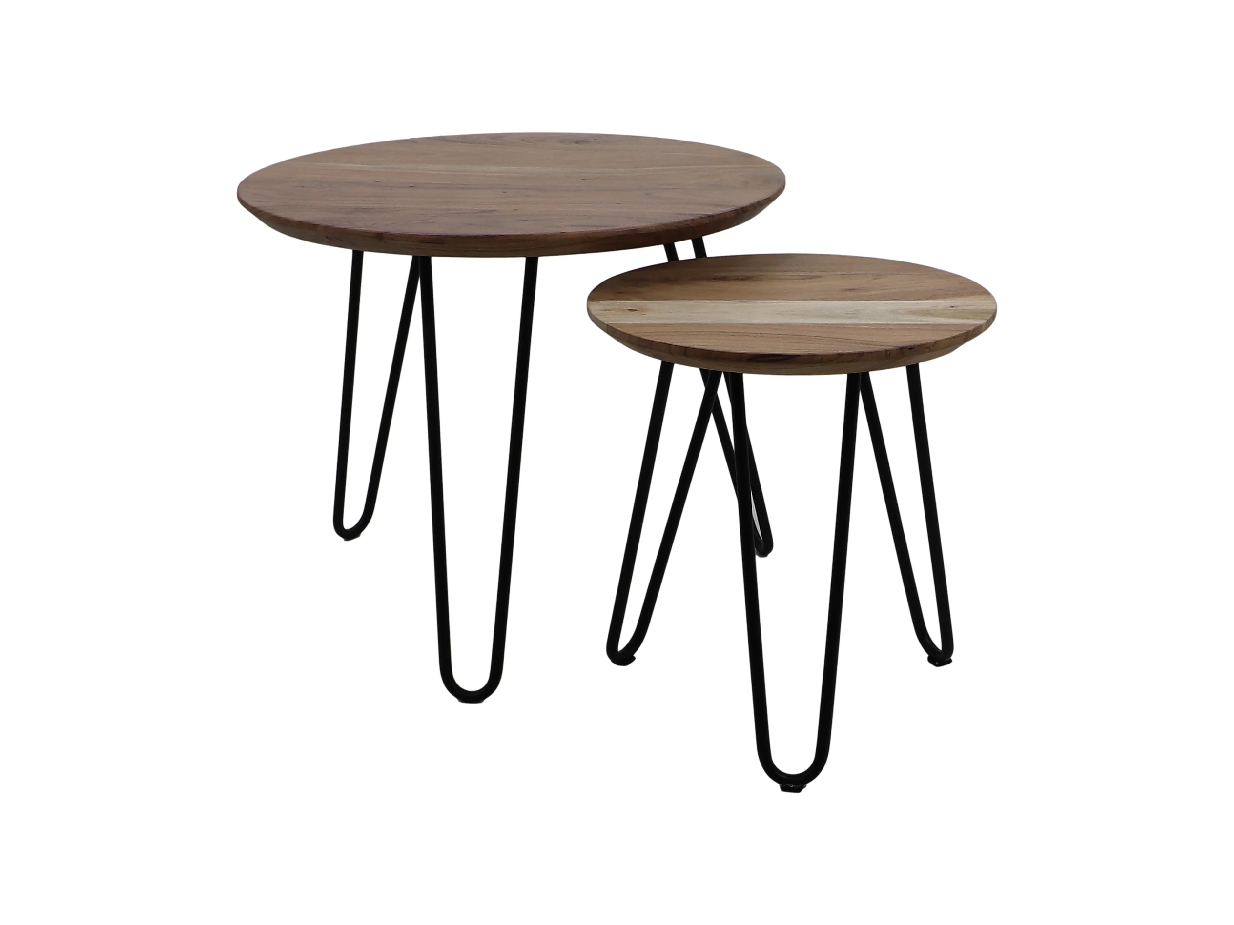 Ensemble de 2 tables rondes Zurich Swiss Edge - Acacia-fer ø60x50+ ø40x43