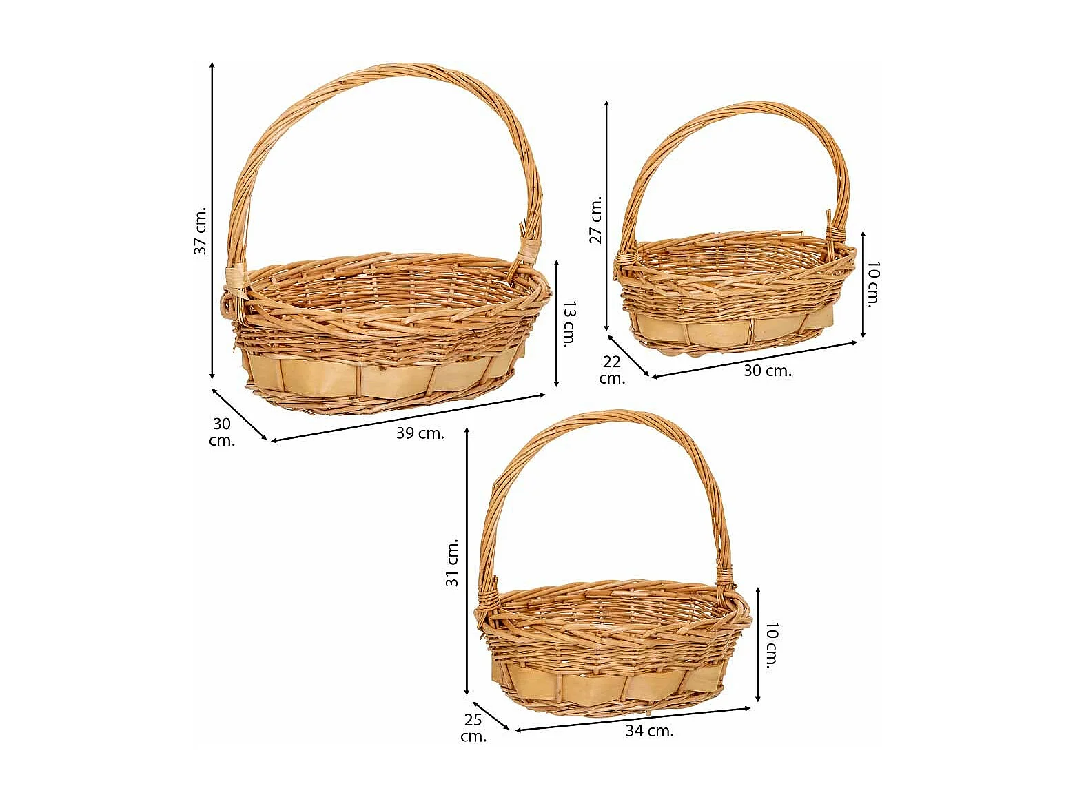 Corbeille en osier doublée avec poignée rabattable marron 38x30x17/30h