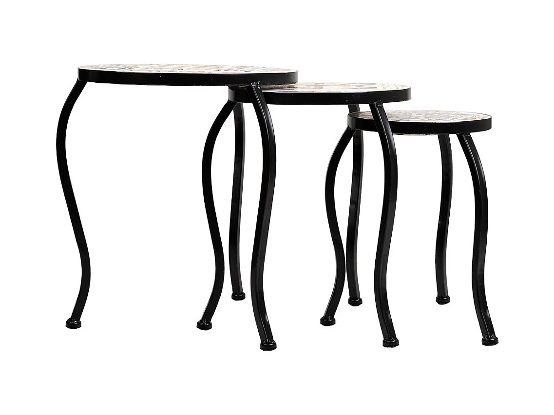 Ensemble de 2 porte-fleurs en mosaïque et fer forgé noirs
