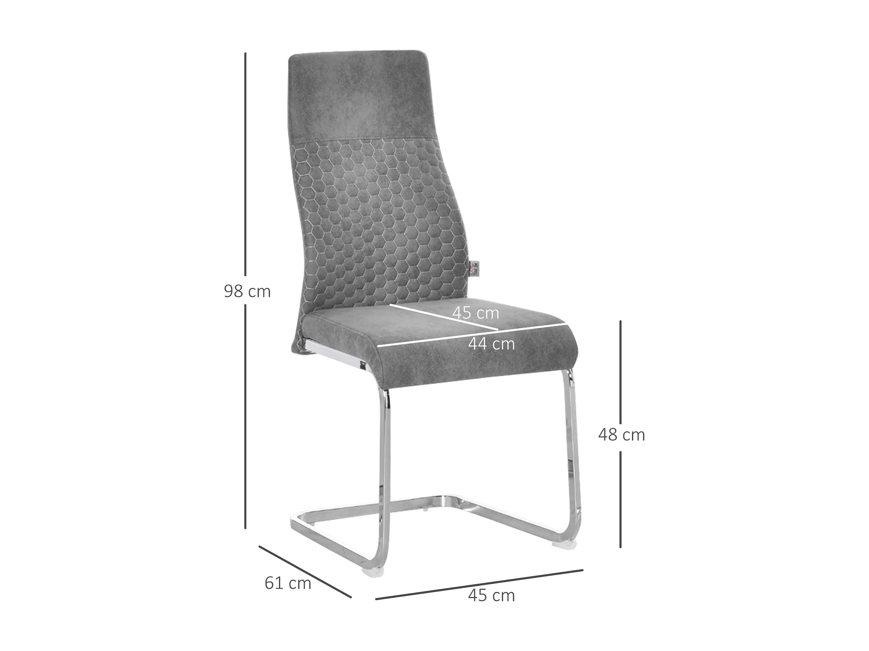 Ensemble de 4 chaises de salle à manger, chaises de cuisine avec dossier, toucher velours, gris, structure en acier