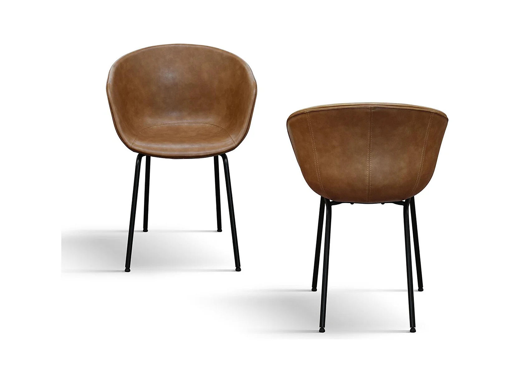 Ensemble de 4 chaises recouvertes de cuir camel et pieds en métal noir - COPENAGHEN