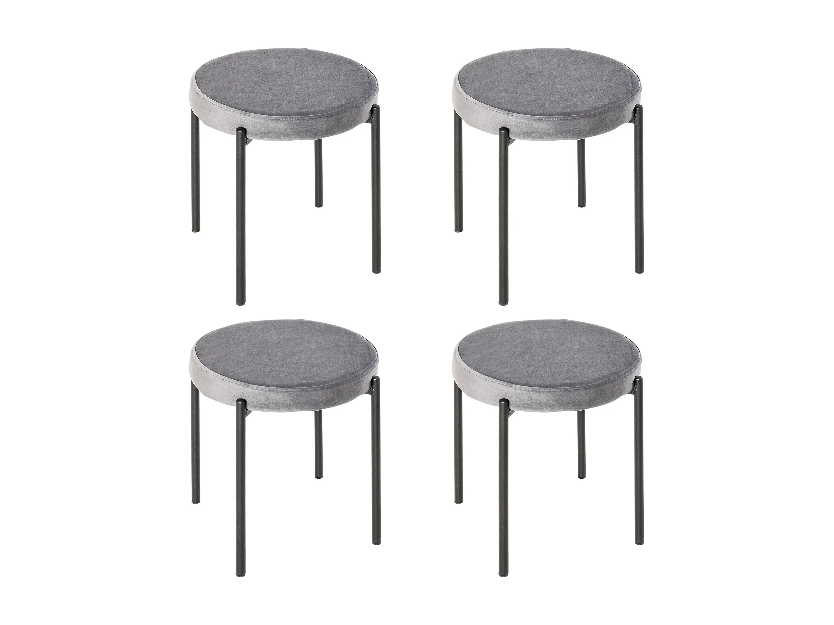 Ensemble de 4 tabourets de salle à manger, empilables, assise rembourrée aspect velours, structure en métal, gris, hauteur 46 cm