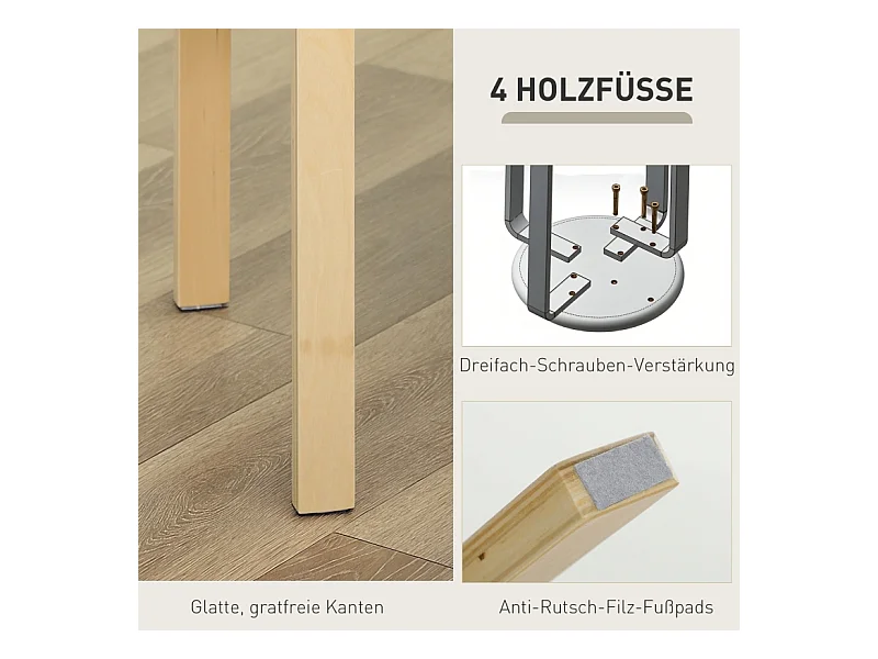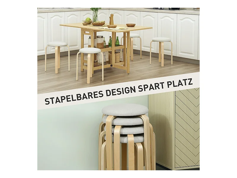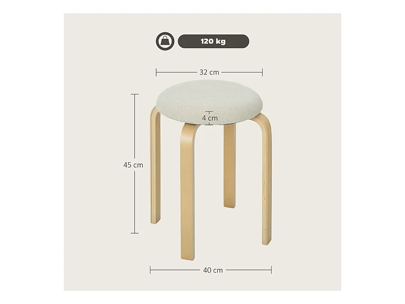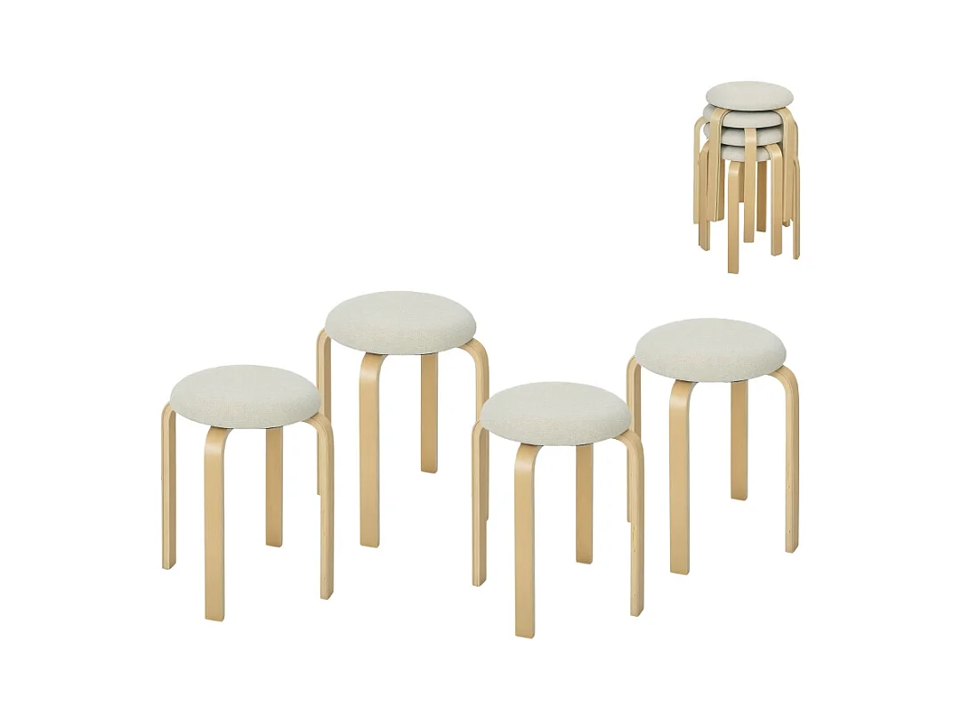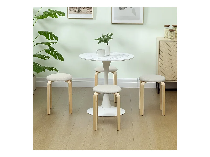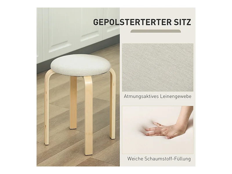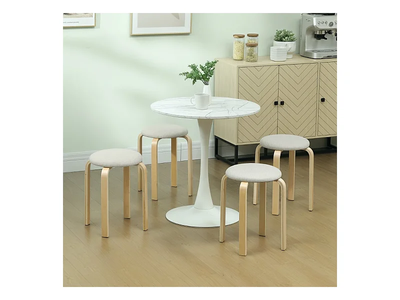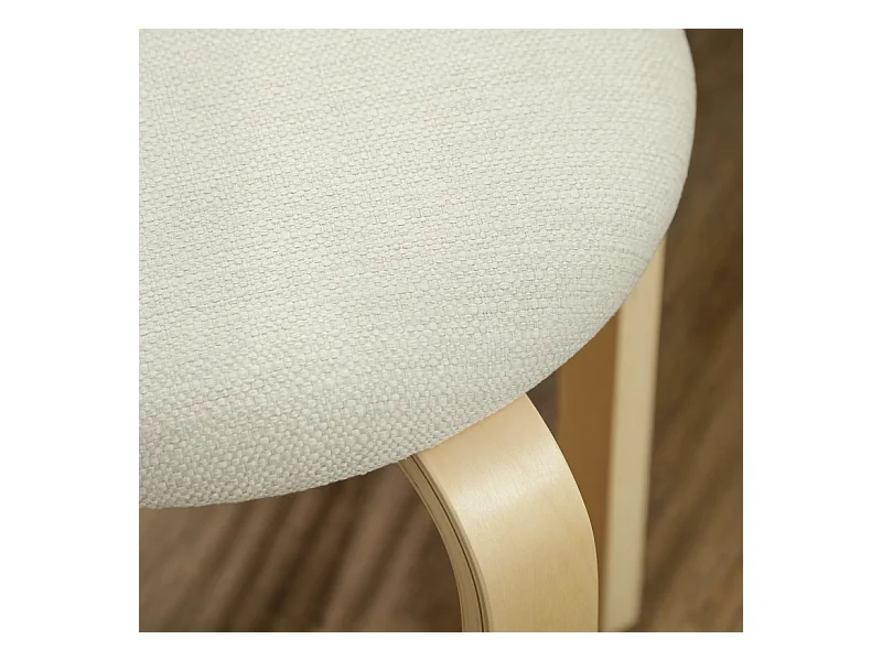 Ensemble de 4 tabourets de salle à manger, empilables, ronds, rembourrés aspect lin, pour cuisine, salon, blanc crème