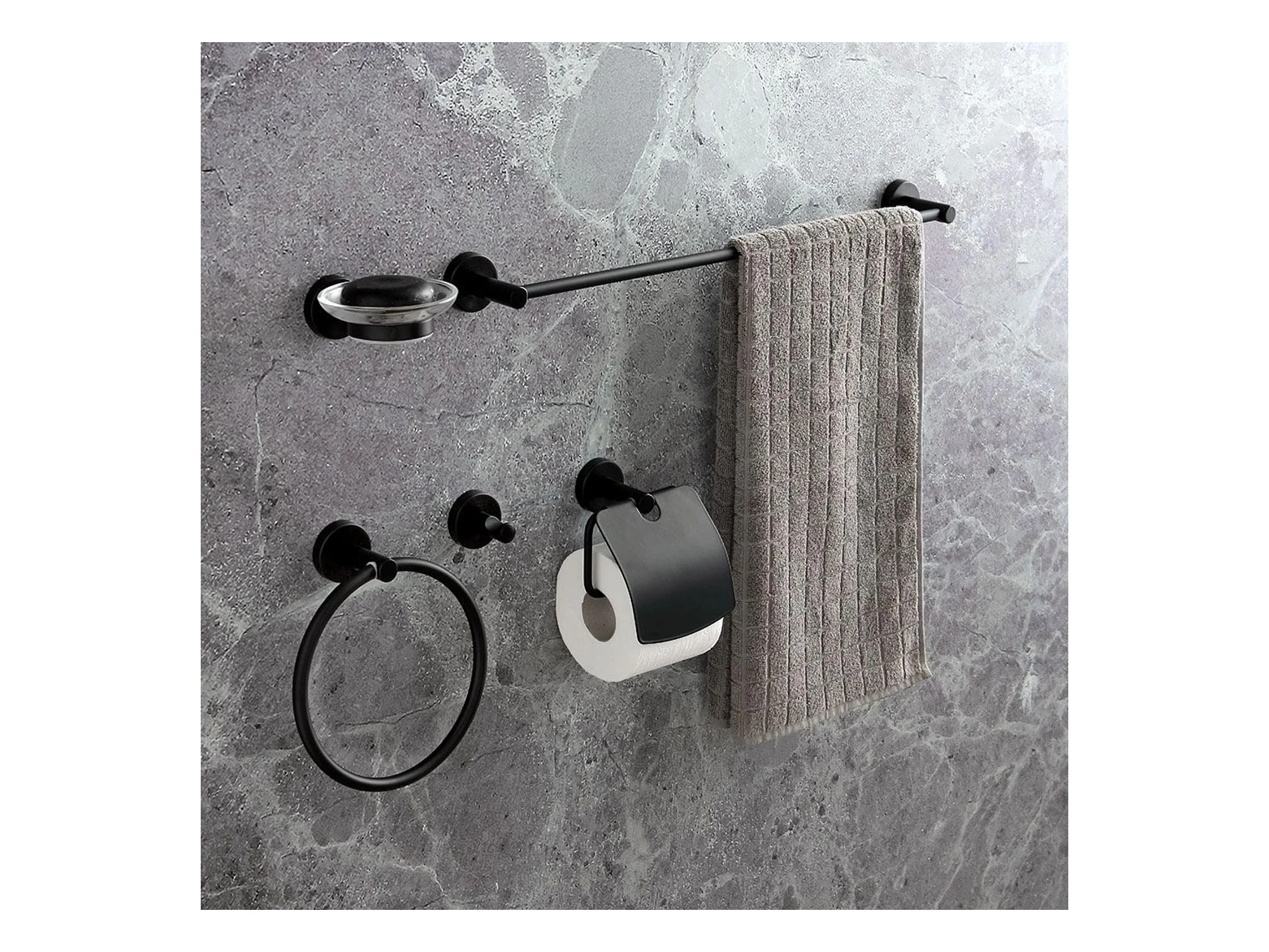 Lot de 6 pièces de quincaillerie pour salle de bain TOCOPILLA avec porte-serviettes et crochets Noir