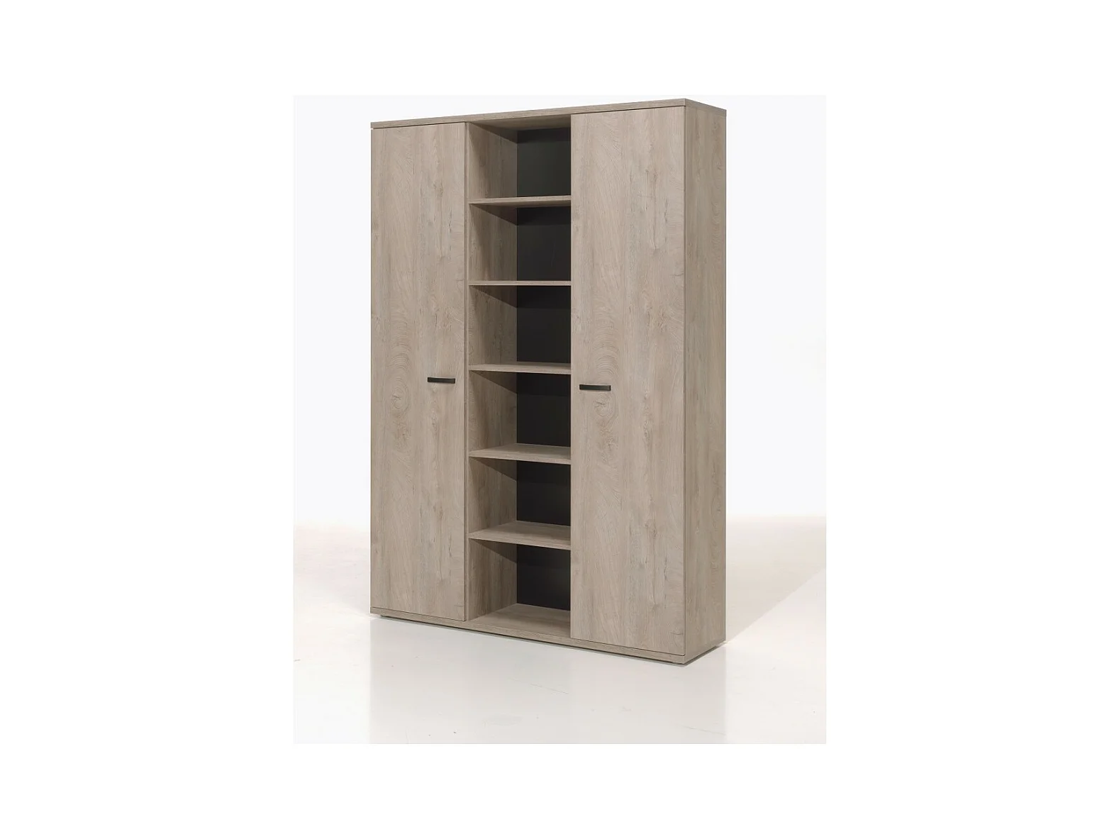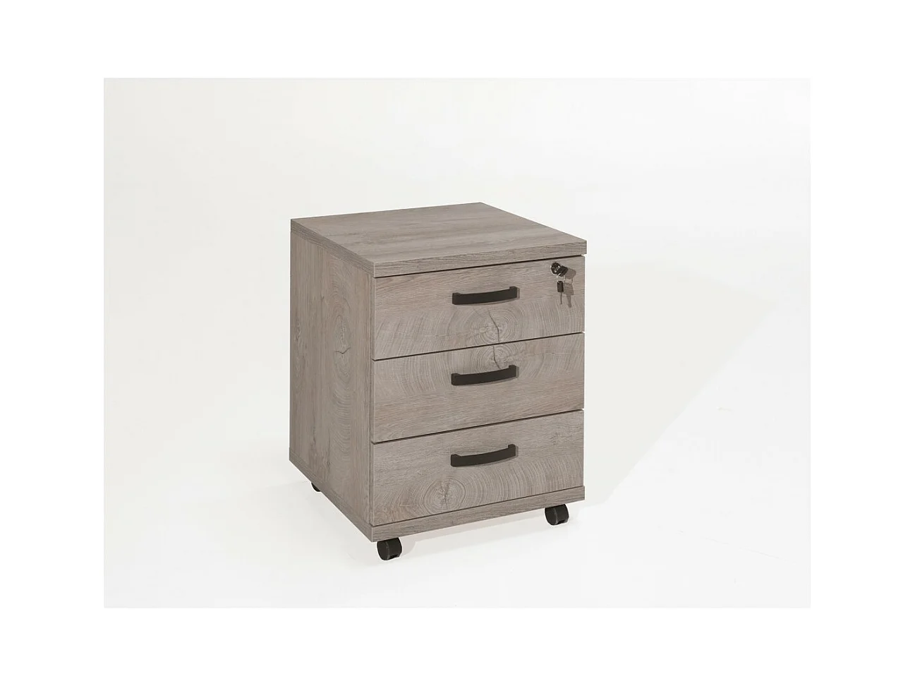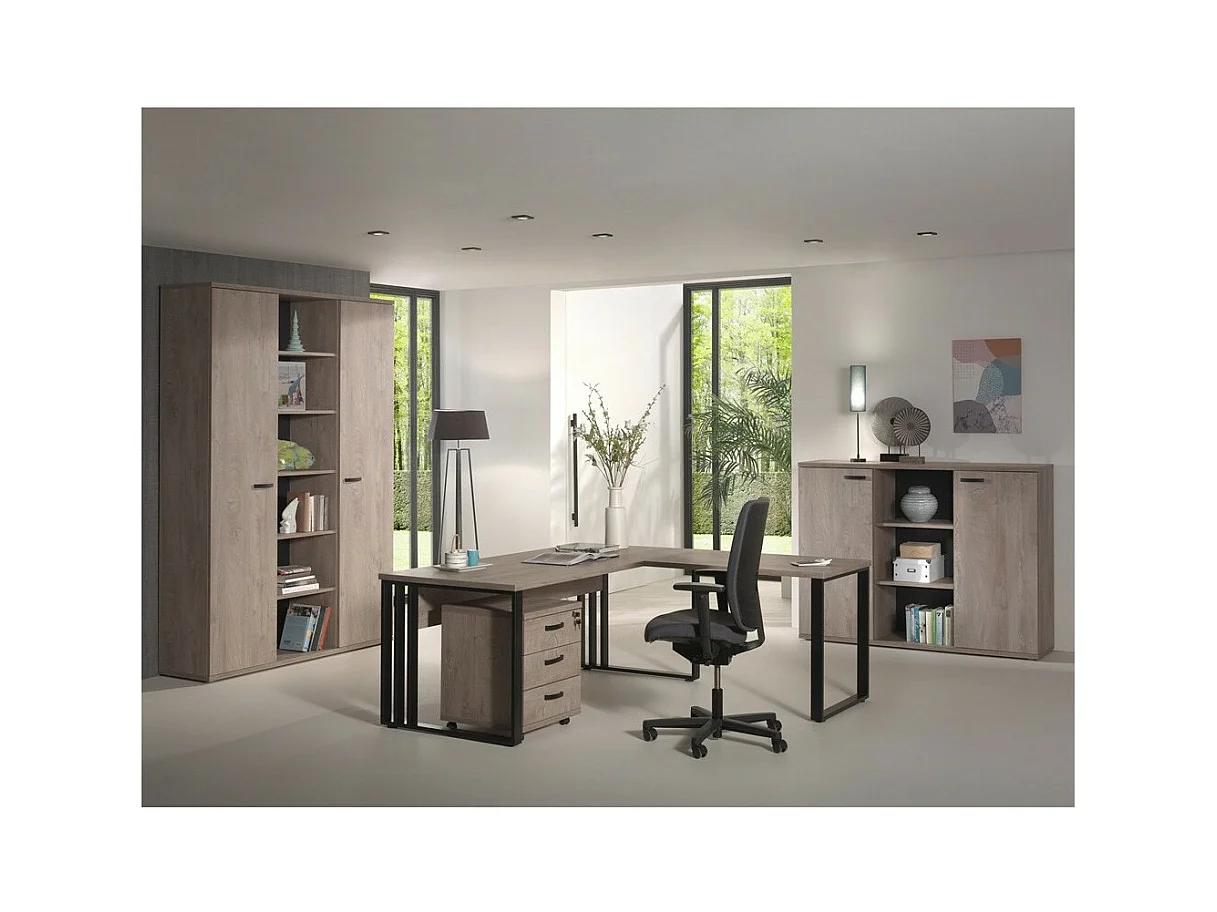 Ensemble de 5 meubles de bureau professionnel coloris chêne brut collection YUKON. Pieds métalliques