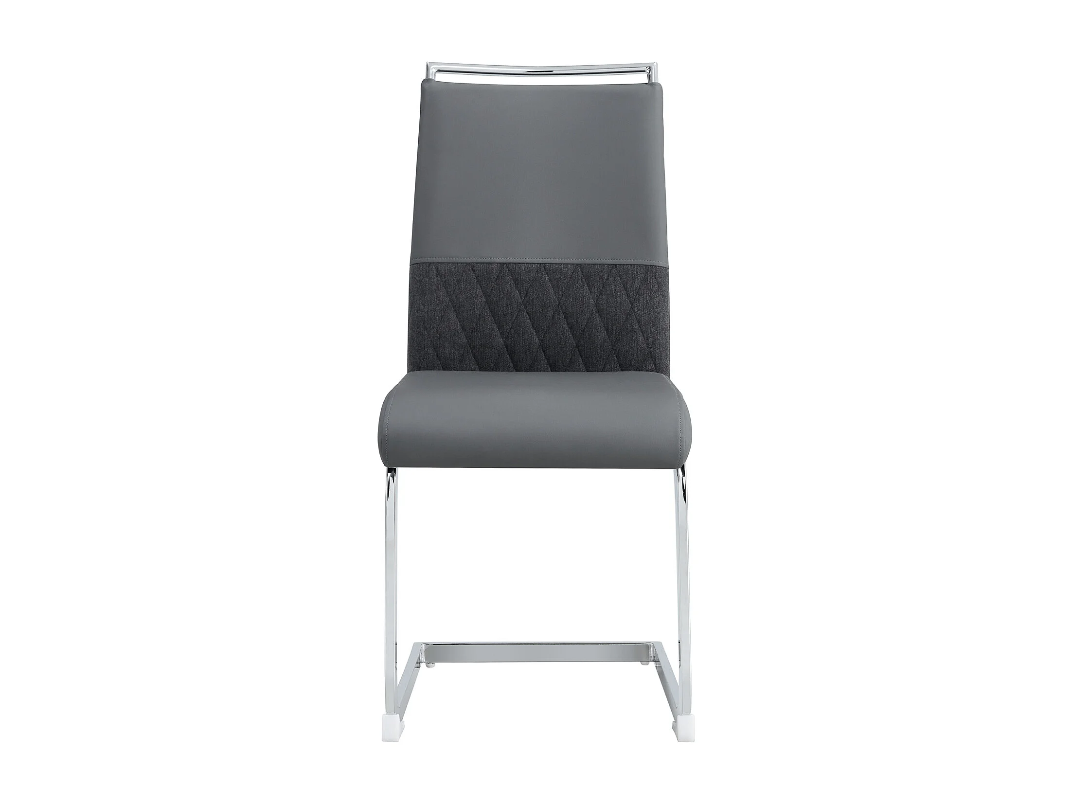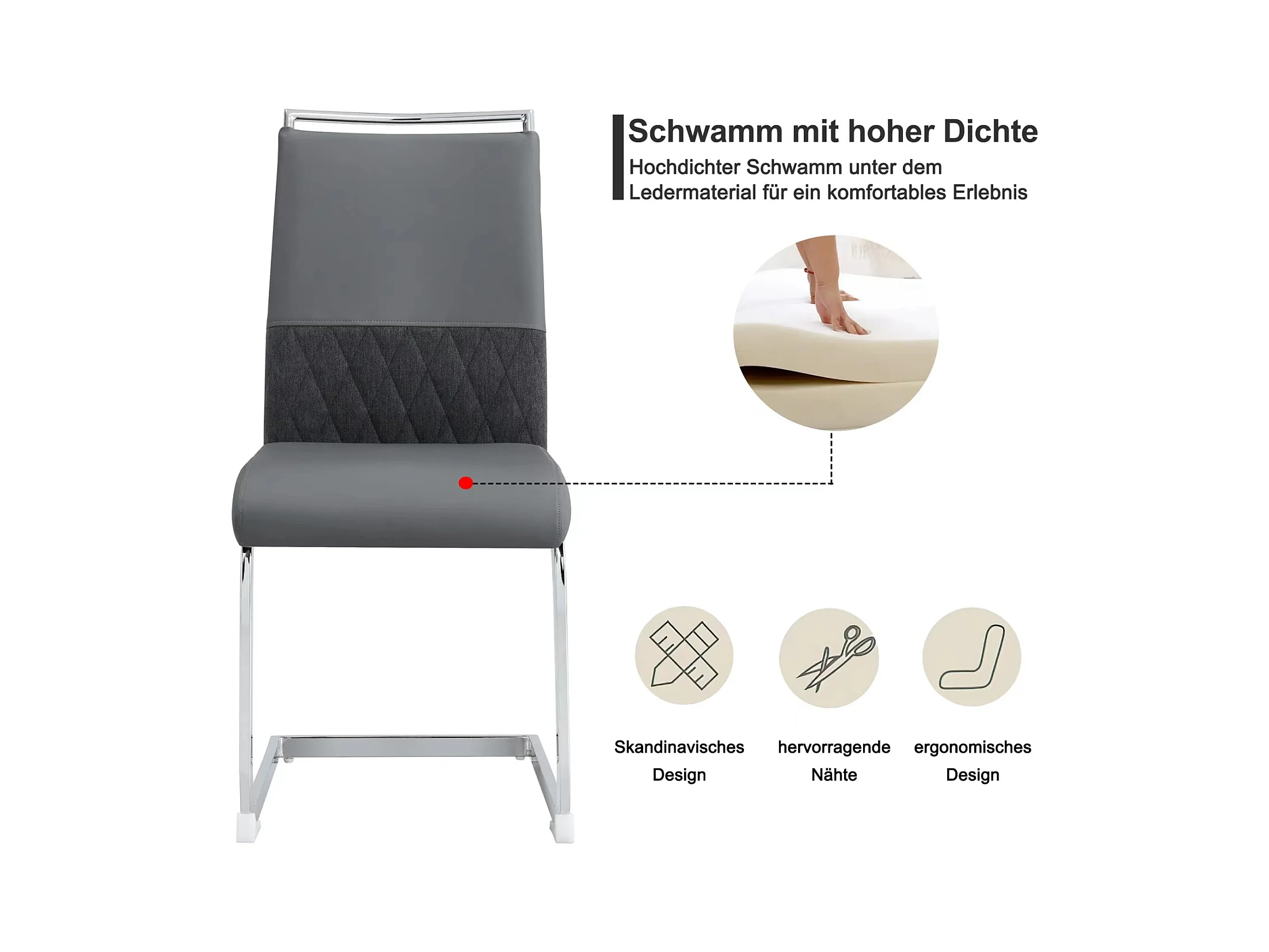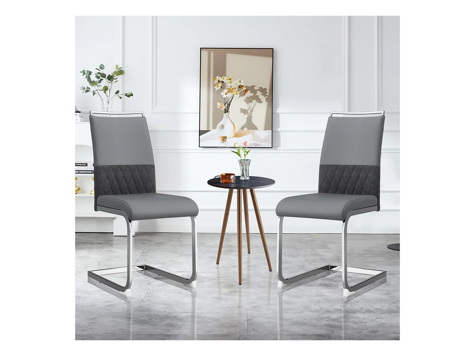 Ensemble de 6 chaises de salle à manger modernes, dossier en cuir PU et lin, dossier haut rembourré, motif à rayures horizontales, gris